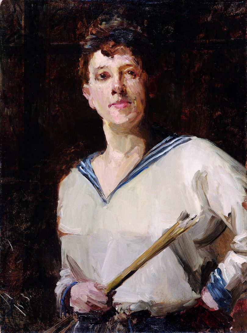 Ihr selbstbewusstes „Selbstbildnis mit Matrosenbluse“ entstand 1893 im Atelier auf Gut Blagodat. © Fondo Marianne Werefkin, Museo Comunale d’Arte Moderna, Ascona
