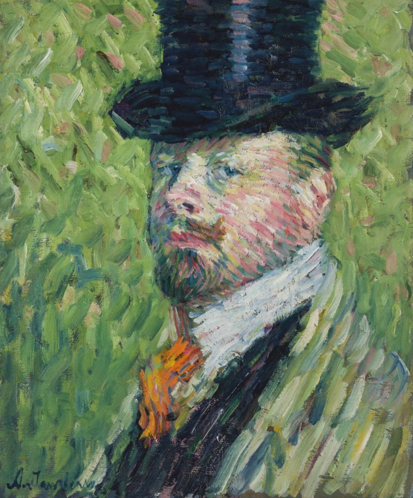 Jawlenskys stolzes „Selbstbildnis mit Zylinder“, 1904, ist von den französischen Neoimpressionisten beeinflusst. © Privatsammlung