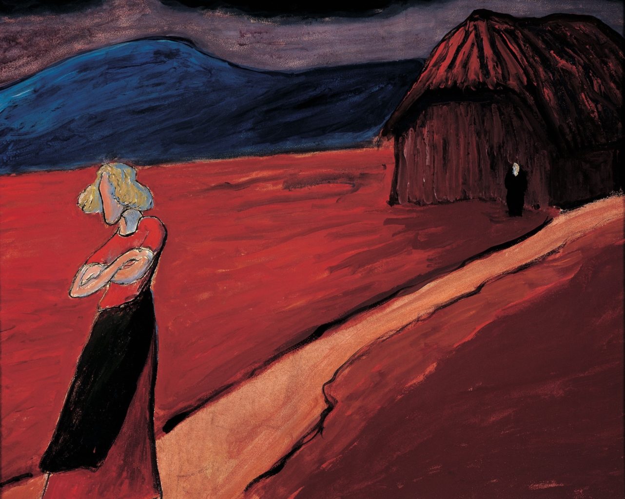 Jawlensky hat zu der Zeit seinen eigenen Stil gefunden. Auf seinem kurz danach geschaffenen Selbstbildnis aus dem Museum Wiesbaden ist nur noch das Motiv traditionell. Alles andere, das Kolorit, der Realismus der Darstellung, die Komposition im Allgemeinen, macht klar, dass hier zwei Maler auf unterschiedlichen Wegen das gleiche Ziel verfolgen: die Abstraktion. Persönlich liegen die beiden da schon oft über Kreuz. Jawlensky und Werefkin sind einander so nahe, dass die Nähe unerträglich wird. Gleichzeitig verdeutlicht die Ausstellung, wie stark sie sich gegenseitig beeinflussten. Das regenbogenfarbige Antlitz, das Werefkin „um 1910“ malt, sieht man in beinahe identischer Form wieder in dem Porträt Jawlenskys, das er 1910 von seinem Neffen Nikita schafft. Wer wen mehr geprägt hat, ist in dieser Situation unmöglich zu bestimmen. In jedem Fall ist es eindrucksvoll zu sehen, wie Werefkin in den Jahren vor dem Ersten Weltkrieg die Farbe benutzt, um Atmosphären und Gefühle darzustellen. In ihrem in Tempera auf Karton ausgeführten Bild „Tragische Stimmung“ sind die beiden Fi­guren, die man darauf erkennt, nur noch Chiffren, während ein Duett aus Blau- und Rottönen das eigentliche Zentrum der Komposition formieren. Auch auf ihrem bereits 1907 entstandenen, grandiosen düsteren Gemälde „Biergarten“ dominiert der Expressionismus der Farben den großen Rest. Die vermeintliche Ruhe, welche die Gäste an ihren bläulich schimmernden Tischen hält, ist angesichts des ­glutroten Hintergrundes, vor dem sie sitzen, eine doch eher fragile Angelegenheit: Kein Zweifel, dieser Biergarten ist ein Biergarten direkt aus der Hölle.
