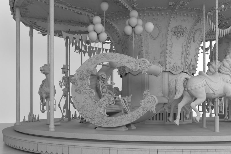 Auch vor den sakralen Orten der Stadt machen die Arbeiten der Künstler und Architekten keinen Halt. Gregor Schneider installiert „Black Lightning“, einen vom Kirchenraum abgeschotteten dunklen Korridor, in einer ehemaligen Zisterzienserabtei und Hans Op de Beeck stellt ein monumentales Karussell auf den Sint-Maartensplein. Die Fahrgäste dieser lebensgroßen Installation sind allerdings keine lachenden Kinder, sondern gelangweilte Skelette, deren blasse Knochen sich in das monochrome Grau des Gesamtwerks fügen.