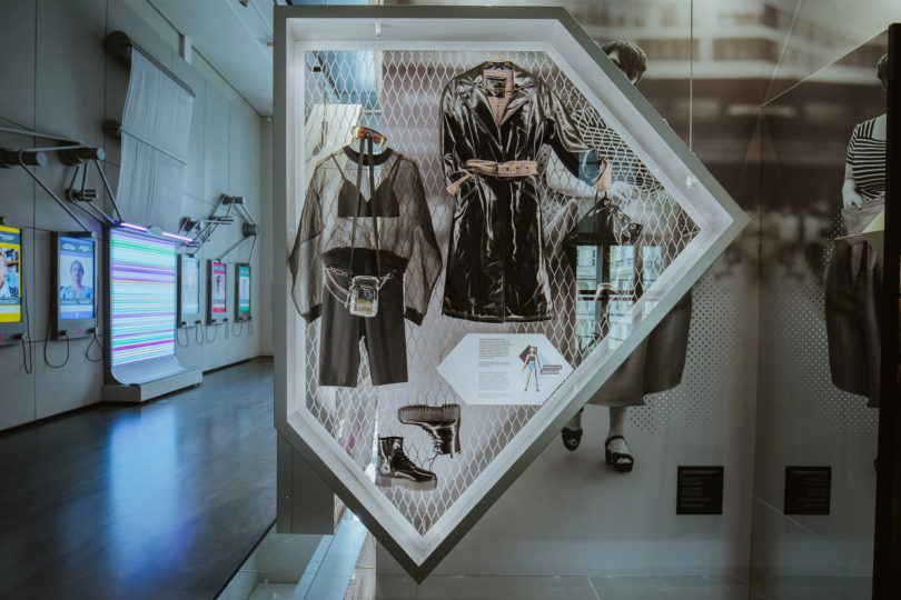 Denn die Ausstellung ist interaktiv: Mit einem Chip-Armband, das es am Eingang im ersten OG gibt, können mehr Inhalte erlebt und eine interaktive Spur durch die Ausstellung gezogen werden. An unterschiedlichen Stellen entscheidet man sich für eine Position – wie bei den Dilemma-Türen, an denen man wählen kann, ob man durch die rechte oder linke Tür den nächsten Raum betritt und damit einer der beiden Aussagen zustimmt, die darüber stehen. Am Ende der Ausstellung bekommt man die Auswertung und trifft auf Menschen, die ganz derselben Meinung sind – oder auch nicht.