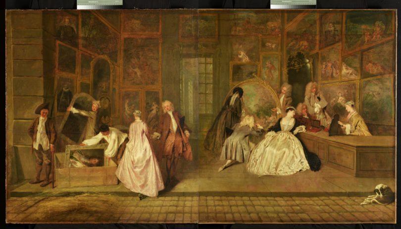 Eines der Hauptwerke des Künstlers wird in den Mittelpunkt gerückt: das „Ladenschild des Kunsthändlers Gersaint“. Dieses 1746 für die königliche Sammlung Friedrichs des Großen (1712-1786) erworbene Gemälde gilt heute als ein zentrales Meisterwerk der Malerei des 18. Jahrhunderts. Ursprünglich als (Geschäfts-)werbung und als „Aushängeschild“ des Pariser Kunsthandels entstanden, regt das Gemälde Fragen an, die den Handel mit Kunst, deren Vermarktung, aber auch das Sammeln von Kunst und die intellektuelle Auseinandersetzung mit ihr betreffen.