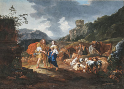 „L’Enseigne de Gersaint“ war ursprünglich ein einziges Ladenschild, gut dreieinhalb Meter breit: Antoine Watteau malt es 1720 kurz vor seinem Tod als „Fingerübung“ in acht Tagen für einen befreundeten Kunsthändler. Vor dem Pariser Geschäft von Edmé Gersaint ist die originelle und viel beachtete Werbung (Öl auf Leinwand) Wind und Wetter ausgesetzt. Also bringt Gersaint das Bild nach zwei Wochen in Sicherheit – und als Kunstwerk in den Handel. Unter Sammlern sind Pendants gefragt, deshalb wird das ungewöhnlich breite, für private Gemäldekabinette wenig geeignete Format irgendwann geteilt. Und so kann Friedrich II. 1746 beim Leidener Händler Pieter Boetens gleich zwei „schöne“ Ladenschilder für seine bereits recht umfangreiche Kollektion erwerben. Mit dieser königlichen Sammlung, heute Teil der Stiftung Preußische Schlösser und Gärten, verfügen Berlin und Potsdam nach dem Pariser Louvre über die weltweit bedeutendsten Watteau-Bestände.