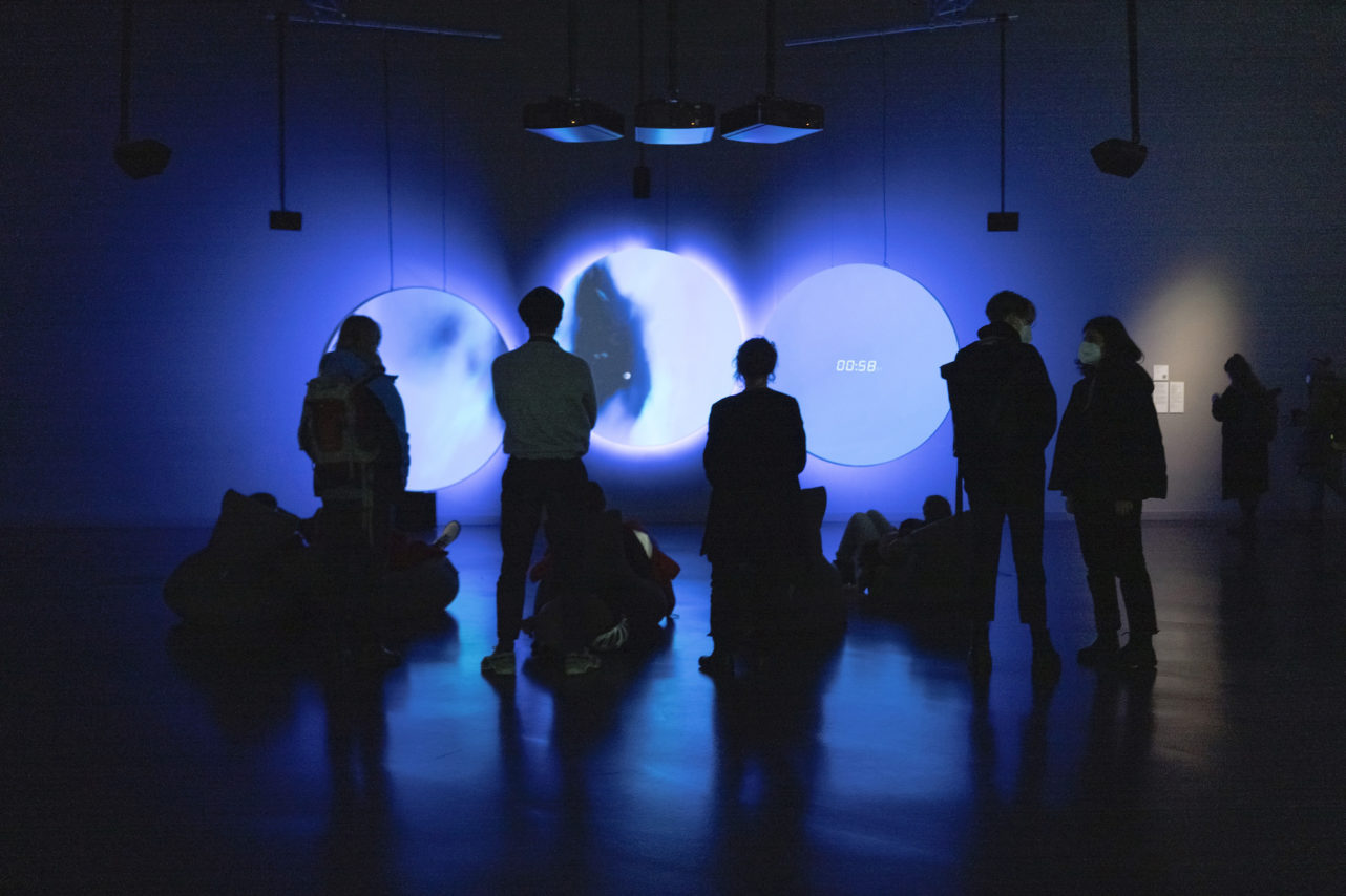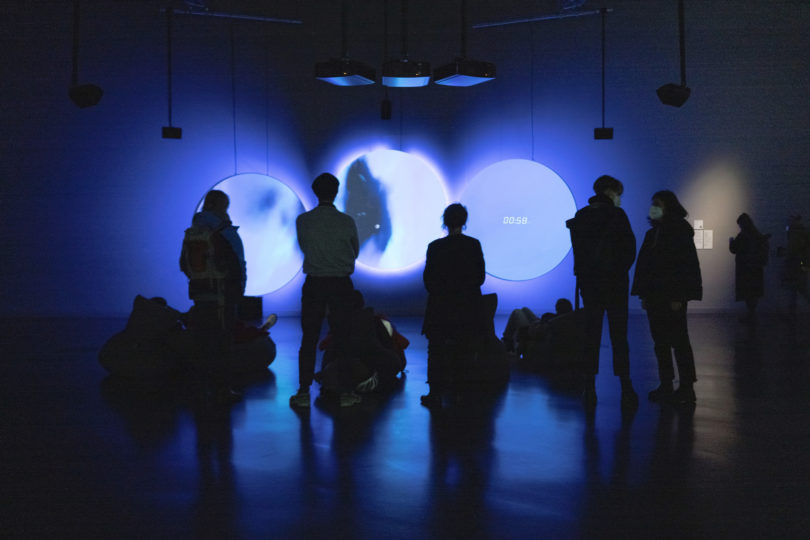 Experimentelle Ausnahmen laufen dann auch mal über mehrere Projektionsflächen wie die 3-Kanal-Videoarbeit „The Lighting“, in der es um das diskriminierende Moment von Kameras geht, die dunkle Hauttöne automatisch aufhellen. Ein Film wie „Shadowboxing“ von Abdi Osman, der in der einstigen (nie genutzten) Leichenhalle einen klinisch weißen Raum zur Aufführung gewählt hat, erzählt dagegen doch sehr klassisch über queere Räume in Toronto. „The Song of the Shirt“, Kerstin Schroedigers Reflexion über die Kleiderindustrie in Polen und Ägypten, hat immerhin einen Raum aus gewebter Baumwolle um sich herum, und für „The Wake“ tritt man in ein Rechteck aus von der Decke herabhängendem Stoff, die einen von allem anderen isolieren. Was gut ist, denn die mehrteilige Arbeit des Ensembles The Living and the Dead über Flucht, Aufbruch und Allianzen spielt an diversen Orten und ist akustisch ähnlich intensiv wie visuell, so dass sie die volle Konzentration braucht.