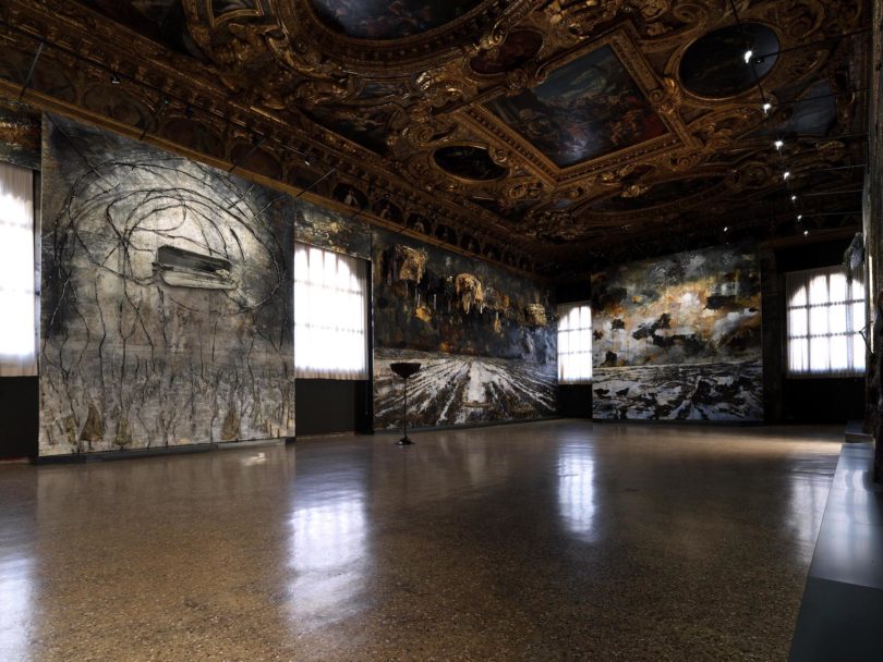 Anselm Kiefer bespielt den Dogenpalast der ehemaligen Seerepublik mit einer fulminanten Schau. In der Sala dello Scrutinio neben dem mächtigen Ratssaal zeigt der deutsche Maler auf 800 Quadratmetern acht großformatige Szenen, die aus je 15 bis 20 Leinwänden zusammengesetzt sind. Mit dieser Bilderfülle übertrumpft er gar den berühmten Jacopo Tintoretto, der einst die Scuola Grande di San Rocco mit 60 Gemälden ausstattete. Kiefers Neuausstattung reicht vom Boden bis unter die goldene Kassettendecke und erzählt venezianische wie Weltgeschichte. Bis 29. Oktober