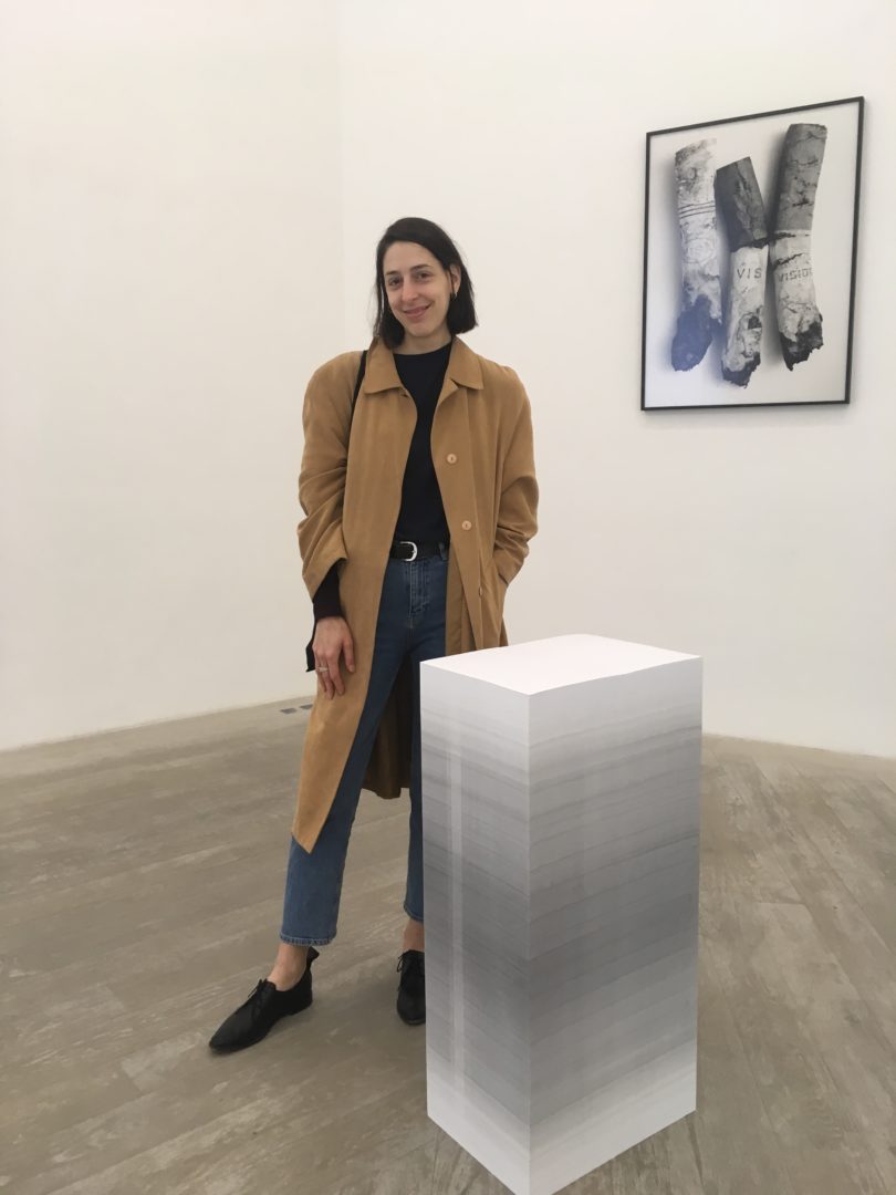 Je mehr man etwas über ein Werk weiß, desto größer die Chance, dass Kunst etwas vermitteln kann, erklärt Pola Sieverding in ihrer Eröffnungsrede. In diesem Sinn wird die Ausstellung von einer Broschüre begleitet, die jede der sechzehn ausgestellten Arbeiten einzeln vorstellt. Im ersten Raum wird das Individuelle thematisiert, unter anderem mit Arbeiten, die sich mit dem Genre des Portraits auseinandersetzen. Als Helmar Lerski Mitte der dreißiger Jahren 140 Portraits des Bauingenieurs Leo Uschatz realisierte, war dies gezielt als Antwort auf August Sanders Projekt „Menschen des 20. Jahrhunderten“ gemeint. Mit „Verwandlungen durch Licht“, beweist Lerski, wie wandelbar, allein durch ständig wechselnde Lichtverhältnisse, das menschliche Gesicht seien kann. Zehn dieser Portraits, eine Leihgabe des Museum Folkwang, stehen der Arbeit „Glitter in My Wounds“ (2021) von Adam Broomberg gegenüber. Als Broomberg die Berliner Schauspielerin und Transfrau Gersande Spelsberg fotografierte, bezog er sich auf diese gegensätzliche Auffassung des Portraits in der Geschichte der Fotografie: an einem einzigen Tag, innerhalb von neun Stunden, entstanden 100 Arbeiten. Das Innenleben einer Person bleibt einem, trotzt andauernder Beobachtung durch die Linse, verborgen. Auf eine ganz andere Art und Weise befasst sich die Künstlerin Estefanía Landesmann mit dem Portrait. Ihre Arbeit „Retrato (Cuerpo de Obra)“ ist eine Skulptur, bestehend aus 9000 gestapelten gedruckten Papierbogen. Das eigentliche Portrait bleibt zwischen den Seiten verborgen.