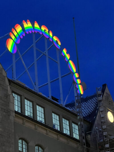 Oslo lag Edvard Munch zu Füßen, als die Panik ihn erwischte. Vom Ekeberg im Osten der Stadt aus hatte er eben noch den Sonnenuntergang über dem Fjord bewundert. Nun stand er plötzlich vor Angst zitternd da und meinte in seiner Verstörung, einen „unendlichen Schrei durch die Natur“ zu vernehmen. Diese existenzielle Erfahrung bewahrte Munch wenig später in seinem berühmtesten Bild: Vor einem flammenfarbigen Himmel hält ein einsamer Mensch den Kopf in seinen Händen. Hinter der Figur sind das funkelnde Wasser und das Stadtviertel Bjørvika zu sehen. Dort am Hafen – und nicht etwa oben auf dem Berg – steht heute das neue Munch-Museum. Und doch lässt sich von hier aus die Perspektive des Malers nachvollziehen. Wenn man nämlich im 13-stöckigen Ausstellungsturm Rolltreppe für Rolltreppe nach oben fährt und dabei durch die großen Fenster schaut, dann hebt sich ganz allmählich der Blickwinkel, sodass am Ende das komplette Panorama von Stadt, Fjord, Inseln und Hügeln vor dem Auge ausgebreitet liegt. Munch light, sozusagen.