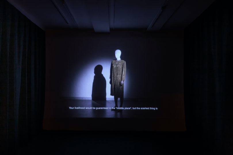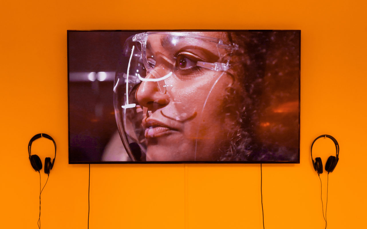 Bei Scherben in der Leipziger Straße läd Alicja Rogalska die Besuchenden dazu ein, in eine apokalyptische Parallelwelt einzutauchen. „Stories from the Edge“ umfasst vier Videoarbeiten, in denen sie sich mit einem kritischen Blick die Zukunft der Menschheit ausmalt. In ihrer künstlerischen Praxis untersucht sie soziale und politische Strukturen des Alltäglichen.