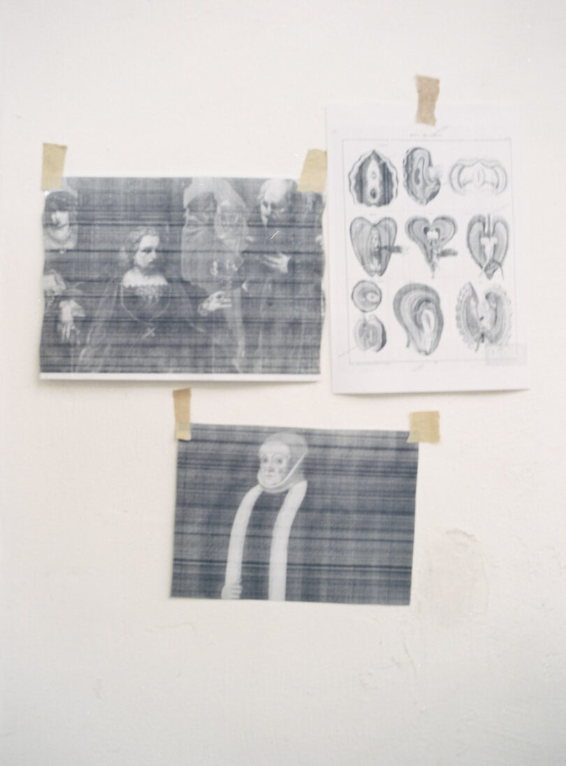 Königin Bona (1494–1557) war eine echte „Power-Frau“. Nachdem sie, 23 Jahre alt, mit König Siegsmund von Polen verheiratet wurde, bewies sie fernab ihrer Heimat großes Talent in Wirtschafts- und Kulturpolitik. Es heißt, sie war sehr strebsam und handelte oft selbstständig. Sie ließ Schlösser, Schulen und Krankenhäuser bauen. Damit machte sie sich als Frau im 16. Jahrhundert nicht gerade viele Freunde. Im Jahr 2023 hängt Bona Sforza nun in Berlin-Schöneberg. Der unheilbringende Kelch rechts neben ihr. An ihm ist eine Schnur befestigt, an der man ziehen kann. Sie ist einer der vielen Lichtschalter, die Kasia Fudakowski in der Galerie ChertLüdde installiert hat.