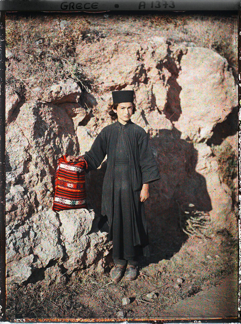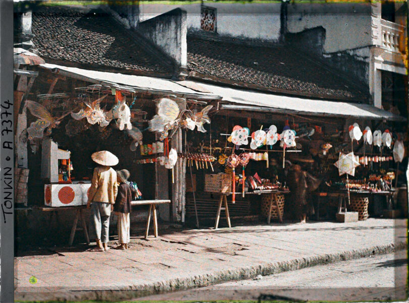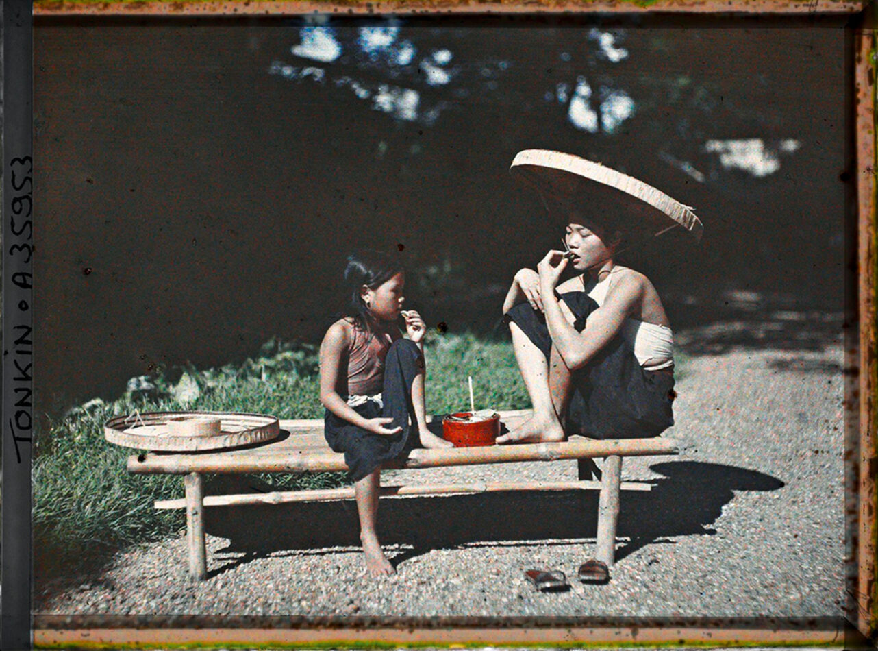 Man muss vorbereitet sein auf das, was einen in diesem vom japanischen Architekten Kengo Kuma entworfenen Glasbau erwartet: eine Bilderflut, eine Zeitreise in die Welt der 1910er- bis 1930er-Jahre. Auf einer fünfundvierzig Meter langen und drei Meter hohen schwarzen Wand leuchten hier in ihrer Originalgröße von neun mal zwölf Zentimetern knapp 2600 Autochrom-Fotografien und geben Einblicke in die Welt, wie sie einmal war: Man sieht Stadtansichten, Monumente, Kirchen, Marktszenen. Fladenbrote in Sarajevo, Granatäpfel auf Korfu, Kokosnüsse in Ceylon, Tomaten irgendwo in Italien. Man begegnet Reispflückern in Vietnam und Kartoffelsammlerinnen in Frankreich, Wasserträgern in China und Indien, verschleierten Frauen in Afghanistan und einer jungen Irin im traditionellen roten Gewand. Eine bourgeoise französische Kleinfamilie blickt zuversichtlich aus dem Bild, ein junger Offizier des Ersten Weltkriegs verfasst auf einer Holzkiste seine Korrespondenz, verwundete Soldaten desselben mörderischen Kriegs liegen in einem Lazarett, eine junge Krankenschwester versorgt sie, die Sonne scheint schräg durchs Fenster herein. Man ist fasziniert vom Ausdruck einer jungen Vietnamesin, die mit fast provokativem Gesichtsausdruck an einer berauschenden Betelnuss lutscht, ist gerührt von jungen Mädchen, die in Tunis stolz ihre bunten Gewänder vorführen, und beeindruckt von der Konzentration eines Mädchens in Algier, das seiner Webarbeit nachgeht.