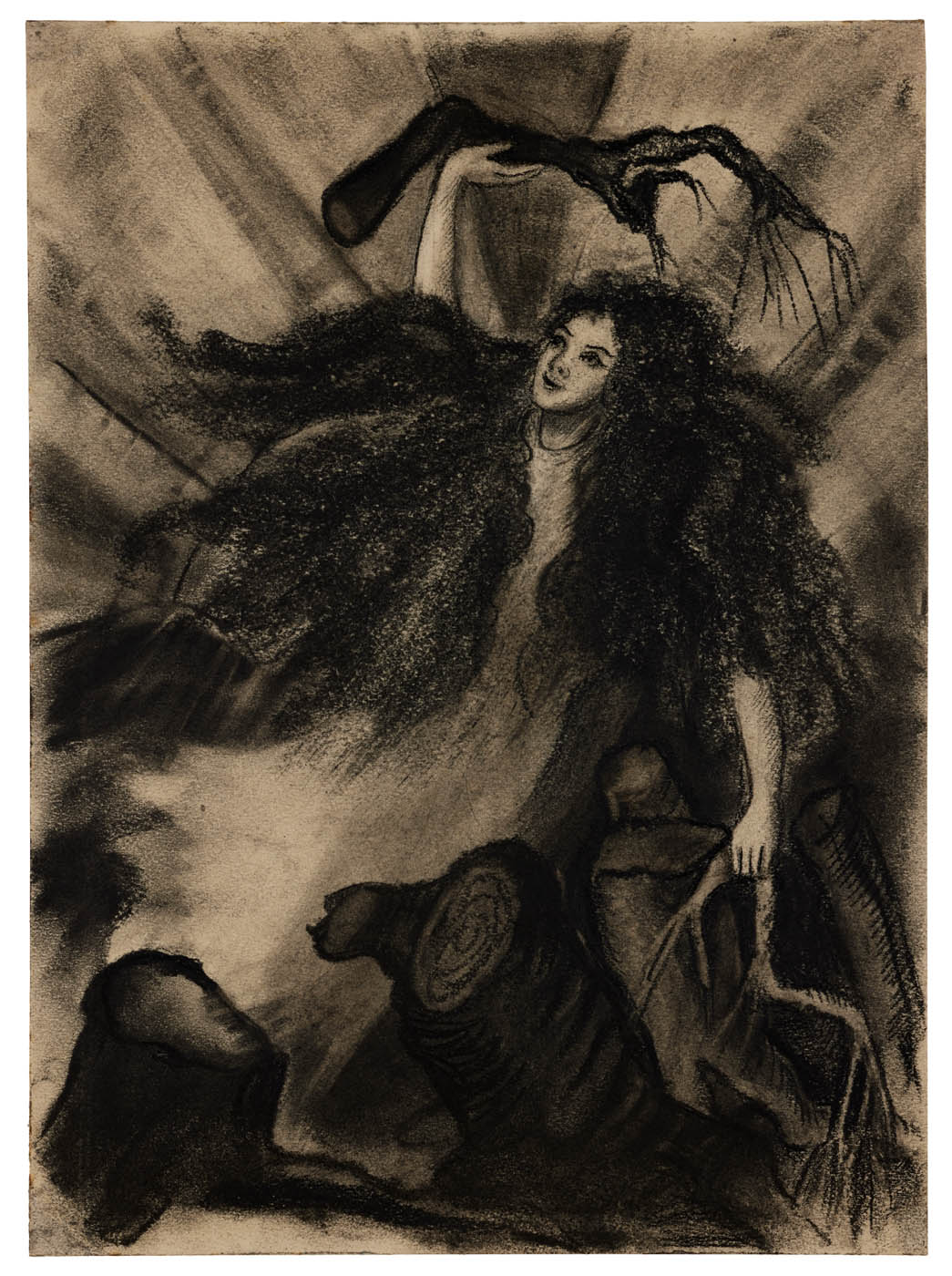 Das hier abgebildete Blatt „Die Freude vertilgt die Wurzeln der falschen Wünsche“ von 1930 fußt auf der Auseinandersetzung der Künstlerin mit chassidischen Legenden, die sie der ostjüdischen, bis heute von männlichen Vertretern dominierten Geschichte entlehnte, um sie in ihre expressive Sprache der Gegenwart zu überführen. So emanzipierte sich auch Lilienfeld, die den Traditionen noch am tiefsten verhaftet scheint, von allen Vorbildern und schuf etwas unnachahmlich Eigenes.
