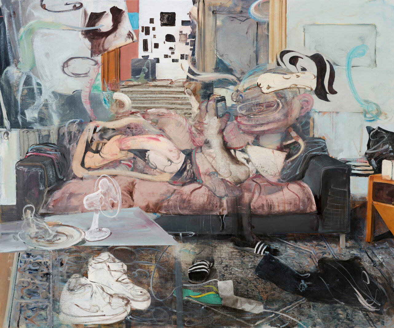 Am Strausberger Platz, dessen Architektur der Inbegriff des Sozialistischen Klassizismus ist, eröffnet am Samstag, den 1. April die Galeria Plan B – und zwar mit einer Ausstellung neuer Werke des Maler-Superstars Adrian Ghenie. Er war im Jahr 2005, damals in seinen Zwanzigern und noch nicht bekannt, in der zweitgrößten Stadt Rumäniens Cluj Mitbegründer des Kunstraums Plan B. Mittlerweile verkauft sich seine Malerei für immer neue Rekordsummen – erst letztes Jahr brachte ein Gemälde von ihm auf einer Auktion in Hongkong einen Zuschlag von mehr als 8 Millionen Euro. Plan B, unter der Leitung von Mihai Pop und Mihaela Lutea, hat seit 2008 eine Galerie in Berlin, die jetzt in die tollen, gerade erst denkmalgerecht sanierten Räume in einem der Torbauten der Fünfzigerjahre gezogen ist. Die neuen Werke von Adrian Ghenie, große Ölbilder auf Leinwand und Kohlezeichnungen auf Papier, sind so malerisch locker und voller Energie, als hätte man urbane Szenen in einen Mixer gesteckt – Straßenpflaster, Schilder, Fassaden oder auch Interieurs, mittendrin aus wilden Schwüngen verdichtete Figuren, aus denen Adiletten, Handys oder eine Zigarette herausragen. Mihaela Lutea sagt, jede der Figuren sei gewissermaßen ein Selbstporträt.