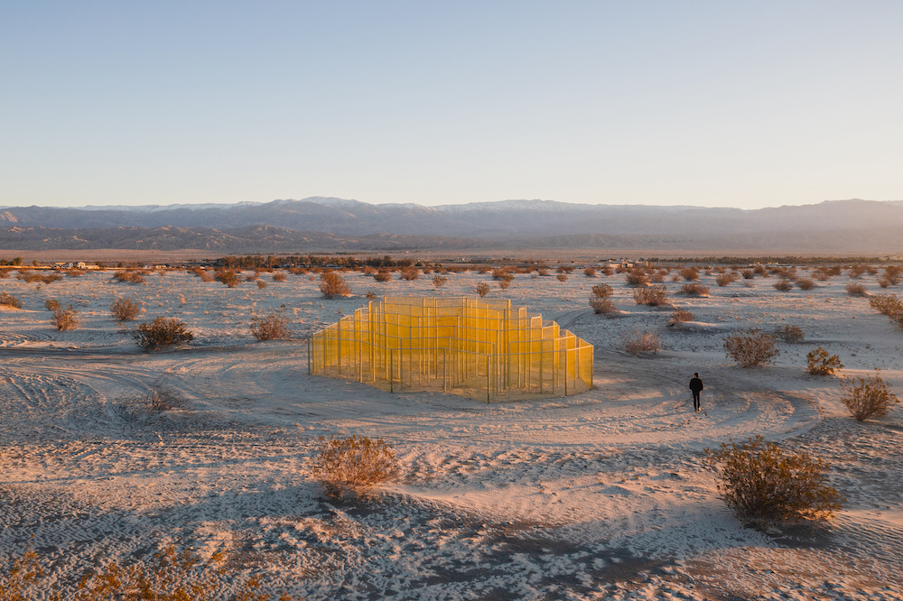 Alle zwei Jahre findet in der kalifornischen Wüste das Kunstfestival „Desert X“ statt. Für die aktuelle Ausgabe schuf die Künstlerin Rana Begum ein Labyrinth aus Maschendrahtzaun