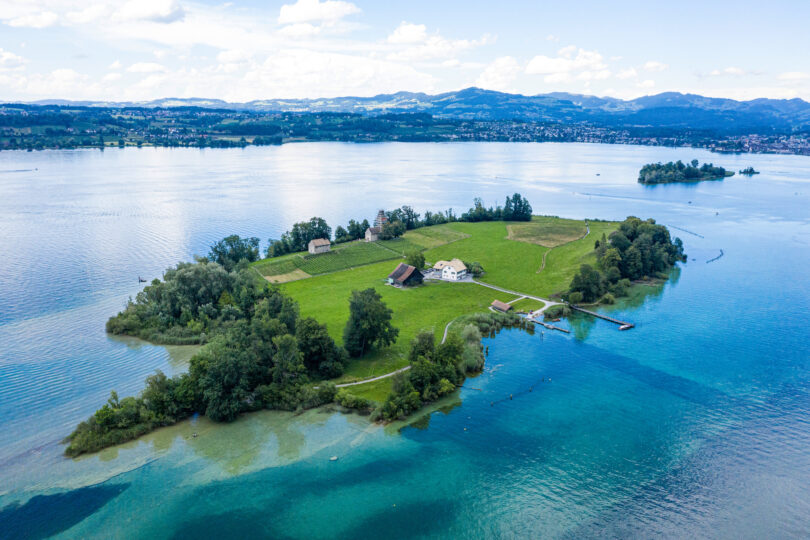 Am oberen Ende des Zürichsees erhebt sich die kleine Klosterinsel aus dem tiefblauen Wasser. Seit dem Jahr 965 gehört Ufnau dem auf dem Festland gelegenen Benediktinerkloster von Einsiedeln. Auf ihr befinden sich die mittelalterliche Kirche St. Peter und Paul und die Kapelle St. Martin, wo einst die Mönche in stiller Andacht ihre Gebete sprachen. Mit der „art ufnau“ wird der geschichtsträchtige und naturverbundene Ort nun auch zum Reiseziel für Kunstfans. Bis zum 15. Oktober setzt die diesjährige Ausgabe den Fokus auf die Fotografie, insbesondere die Landschaftsdarstellungen von Joni Hedinger. Die Inselwirtschaft versorgt hungrige Gäste mit hausgemachten Kalbsbratwürsten, Fischknusperli vom Zürichsee und köstlichem Apfelkuchen.
