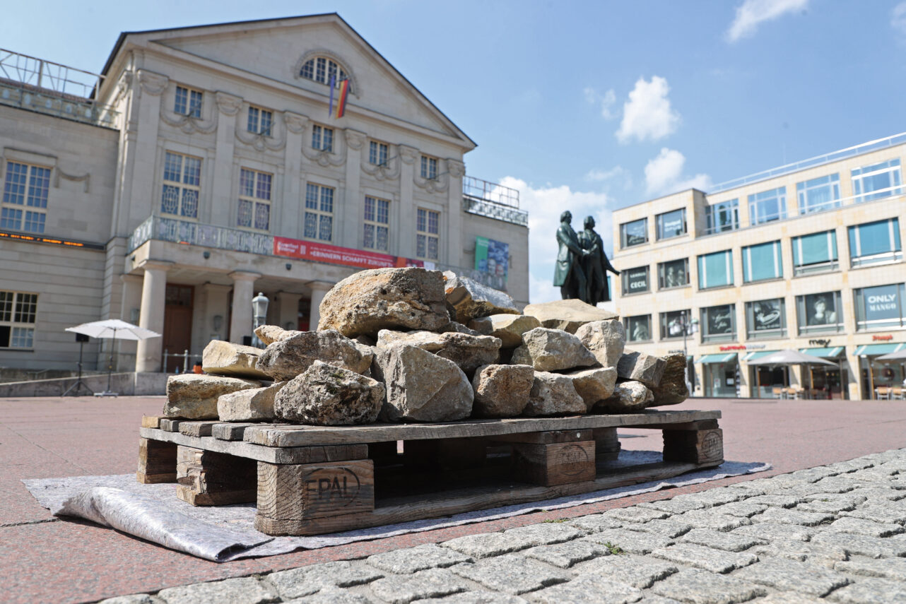 Auf dem Theaterplatz wurde ein Steinmal des Objektkünstlers Günther Uecker errichtet. Das Material dafür stammt nach Angaben von Kunstfestchef Rolf C. Hemke vom Steinbruch des früheren KZ bei Weimar, in dem die Häftlinge unter unmenschlichen Bedingungen schwerste Zwangsarbeit leisten mussten. Die steinernen Relikte sollen eine Woche lang stehen bleiben.