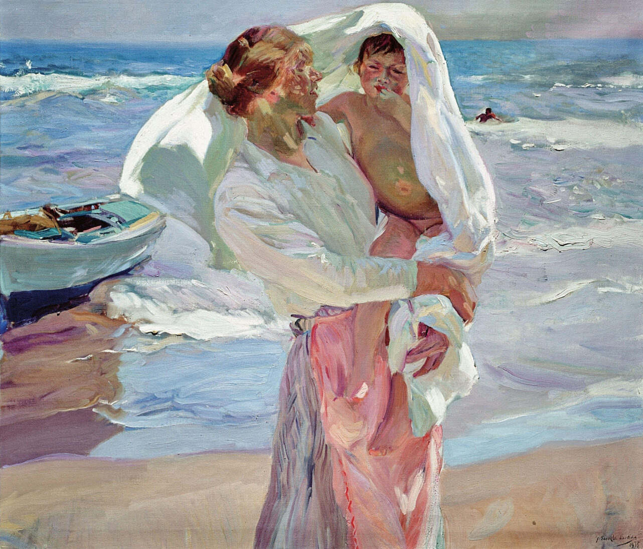 Damit sei nichts gegen die älteren Granden der Hell-dunkel-Regie gesagt, gegen Rembrandt oder El Greco, nichts gegen die zarte Kunstbeleuchtung von Botticellis Gemälden oder gegen das göttlich-goldene, dann auch himmelblaue Strahlen Giottos. Aber durch die neuen Pleinair-Techniken, durch die Erfindung tragbarer Ölfarben in Tuben kommt zum weiterhin wichtigen Hauptplatz des Künstlers, dem Atelier, noch ein weiterer hinzu: das Vor-Ort-Sein. Die Maler können den unmittelbaren Licht- und Farb-Eindruck sofort auf Pappe oder Papier skizzenhaft festhalten und mit ins Atelier bringen. Ob sie nun gleich vor Ort finalisieren, wie Sorolla, oder doch eher nicht: der skizzenhafte Eindruck bekommt immer mehr Hauptwerkcharakter, deutlich zu sehen bei den französischen Impressionisten, aber auch bei vielen anderen Künstlern. Kaum ein Maler versteckt damals noch den Pinselstrich, umgekehrt wird er zum stolzen Ausweis künstlerischen Schaffens.