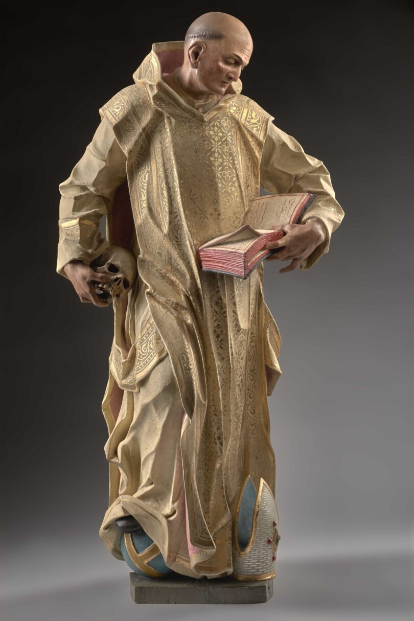 Die Holzstatue des Ordensgründers Bruno von Köln stand sehr wahrscheinlich im Kloster. © Marcel Schawe/Bischöfliches Dom- und Diözesanmuseum Mainz