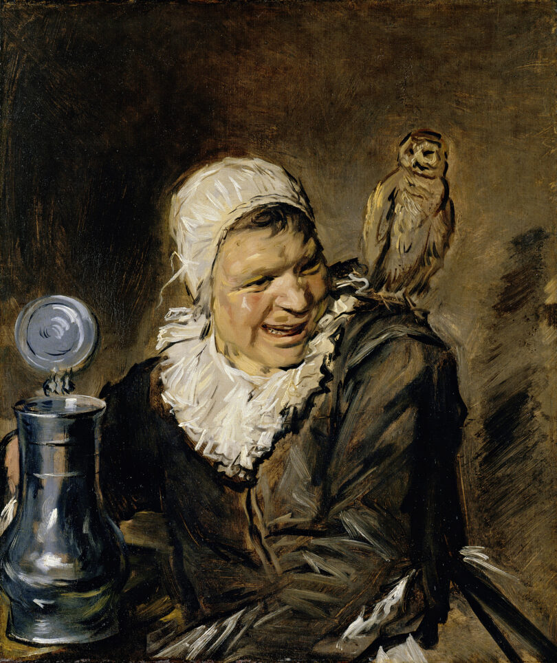 Gaststätten waren nicht nur gut für Orgien. Es existieren historische Akten, aus denen hervorgeht, dass Haarlemer Wirte wie Jan Bossu und seine Frau in ihren Hinterzimmern Kunstwerke aufbewahrten, um sie Interessenten zu zeigen und zu verkaufen. Der Wirt Hendrick Willemsz den Abt war sogar alles drei: Maler, Wirt und Kunsthändler. Frans Hals hatte einen Bekannten in Amsterdam, Barend van Someren, mit dem er ein derart enges Vertrauensverhältnis hatte, dass er Taufzeuge von Hals’ Tochter Maria wurde. Auch van Someren war Maler, Wirt – und im Kunsthandel tätig. Auch sonst sollte man sich vor einfachen Lesarten hüten, dazu war die niederländische Kunst des 17. Jahrhunderts und die von Frans Hals im Speziellen zu vielschichtig. Ein Gemälde wie „Der fröhliche Lautenspieler“ von 1624–28, eine Leihgabe der Guildhall Art Gallery der City of London, stellt nicht etwa einen jugendlichen Musiker dar, der gerade ein Weinglas hebt. Es gehört wohl vielmehr zu einem Bilderzyklus, in dem Hals allegorisch die „Fünf Sinne“ illustrierte. Der sogenannte „Pekelharing“, der in London nur in der Leipziger Version zu sehen ist, das heißt ohne den Zinnkrug, mit dem ihn Hals auf dem Bild in Kassel auch schon gemalt hat – er ist kein verwirrter, verwahrloster Trinker. Sondern eine in den Komödien und Volksbelustigungen der Zeit gebräuchliche Kunstfigur, deren Status ungefähr dem Spötter oder Hofnarren entsprach – er war einer, der unbequeme Wahrheiten aussprechen und sich über andere lustig machen durfte. Nur die „Malle Babbe“, was so viel bedeutet wie die „verrückte Babbe“, war wohl wirklich auch im echten Leben eine Säuferin. Irgendwann hatte sie es in den Augen ihrer puritanischen Mitmenschen zu weit getrieben und landete in Haarlem „in einer Besserungsanstalt“, wie es dazu im Katalog der Ausstellung heißt. Aber auch da wollte Hals die Dinge nicht einfach so stehen lassen. Er malte ein zweites Bild von ihr, ohne den Bierhumpen, aber auch mit der Eule, die ihr auf der Schulter sitzt (es befindet sich heute im Metropolitan Museum New York, und Friso Lammertse und Jaap van der Veen halten es „wahrscheinlich für das Werk eines Assistenten“, ohne dabei hundertprozentig überzeugend zu sein). Diese Eule, so Kurator Lammertse, „verleiht dem Gemälde einen neuen, allgemein rhetorischen Sinn. Bei Laienspielen winkten Figurinen von Eulen denjenigen als Preis, die die treffendsten Aphorismen vorbrachten.“