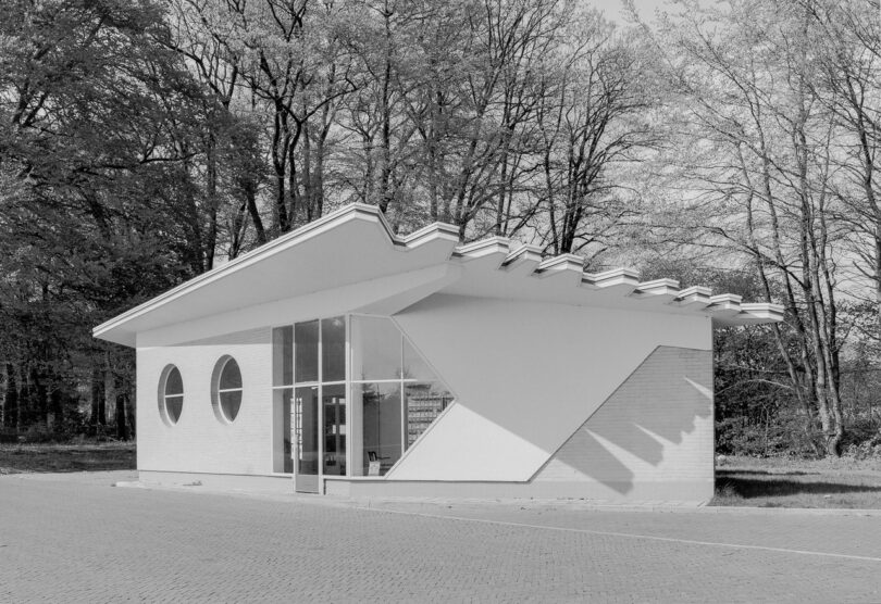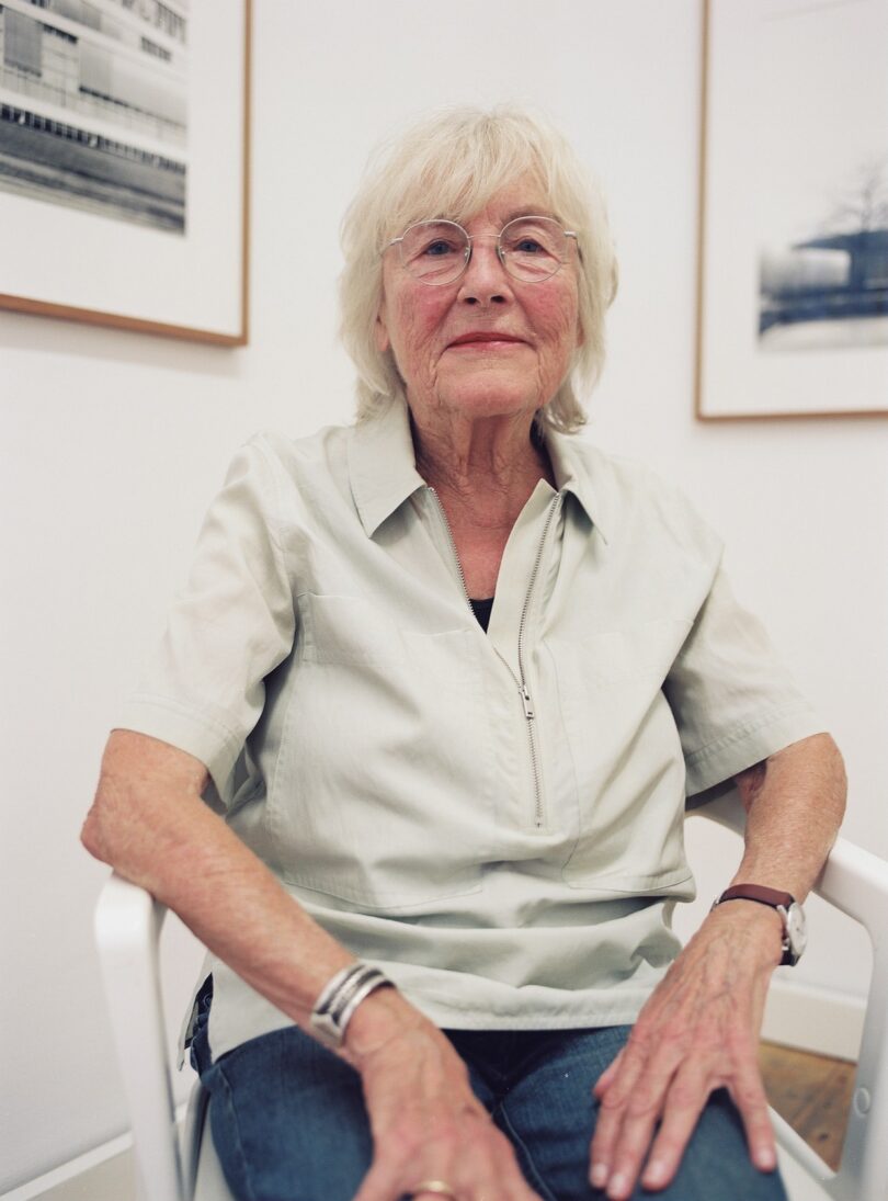 Wir stehen in ihrer Berliner Galerie, die bis zum 28. Oktober einige Fotografien ihrer Serie „Moderne in Europa“ zeigt. Mit ihrer analogen Mittelformatkamera reiste Irmel Kamp, geboren 1937, durch europäische Länder, um die zeitgenössische Architektur der 1920er- und 1930er-Jahre in ihrem Ist-Zustand festzuhalten. Sie dokumentierte Wohnhäuser, Theater, Kinos, Tankstellen, Fabriken und Messegelände in Italien, Polen, Tschechien, Deutschland und den Niederlanden. Wie das Beispiel mit dem Auto zeigt, ist ihr Ansatz dabei nicht so streng, wie man es von Architekturotografie gewohnt ist. Vor der Hauswand eines Theaters in Tschechien stehen Mülltonen, ein Kino in Florenz liegt verlassen in einer vertrockneten Landschaft. Mal fällt ein Schatten besonders schön, wie bei ihrer Aufnahme der Tankstelle Purfina, oder das Haus ist von einem Baum verdeckt, wie in ihrer Aufnahme des Huis Schröder in Utrecht.