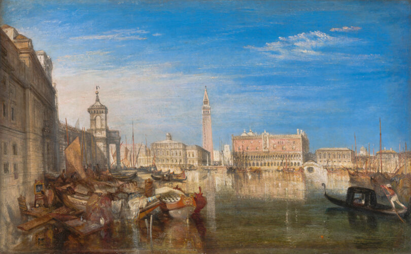 Doch damit ist die stilistische Vielfalt, die man im Schaffen dieses Jahrhundertkünstlers findet, noch lange nicht erschöpft. Amy Concannon, Tate Britain-Kuratorin, betreut die Schau zusammen mit Sam Smiles, Professor der Kunstgeschichte an der Universität von Exeter, von Londoner Seite. In ihrem Text in der Ausstellungsbroschüre weist Concannon darauf hin, dass es in Turners Œuvre so unterschiedliche Arbeiten gibt, „dass man nicht ohne Weiteres darauf käme, sie könnten von ein und demselben Künstler stammen“. Aus Venedig, wo sich Turner sehr gerne aufgehalten hat, stammen Bilder, die ein Traum in Weiß, Gelb und dezentem Rosa sind. Auf ihnen ist kaum etwas anderes zu erkennen als der Dunst der Lagune in hochkonzentrierter Form. Aber es werden in München auch Gemälde gezeigt wie „Bridge of Sighs, Ducal Palace and Custom-House“ von 1834, das genauso gut ein Canaletto sein könnte – der italienische Maler ist sogar unten links im Bild dargestellt. Oder „Moonlight, a Study at Millbank“ von 1797: Caspar David Friedrich in Reinkultur.