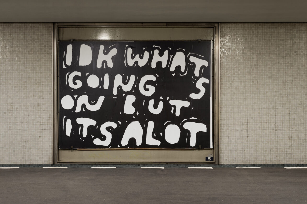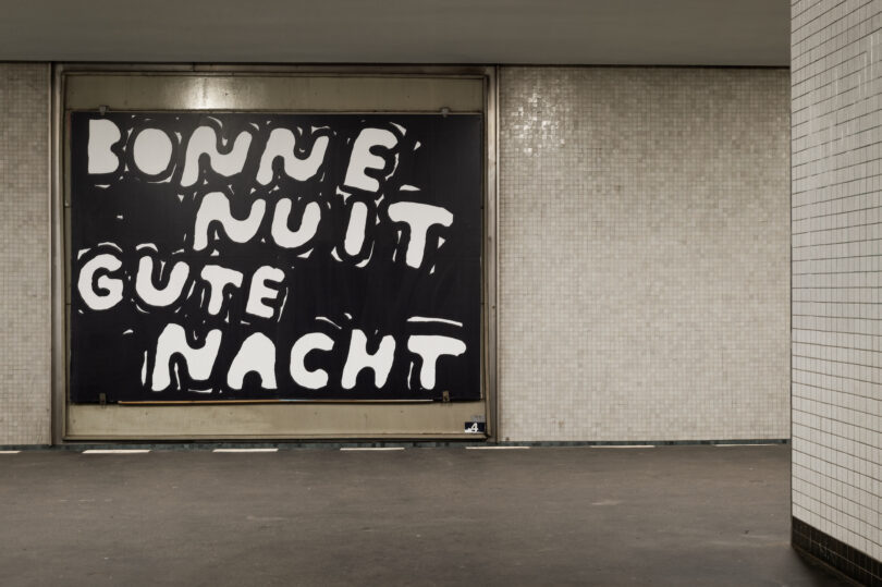 Der Künstler Stefan Marx bespielt die Werbeflächen am U-Bahnhof Hansaplatz in Berlin mit seinen markanten Typografien
