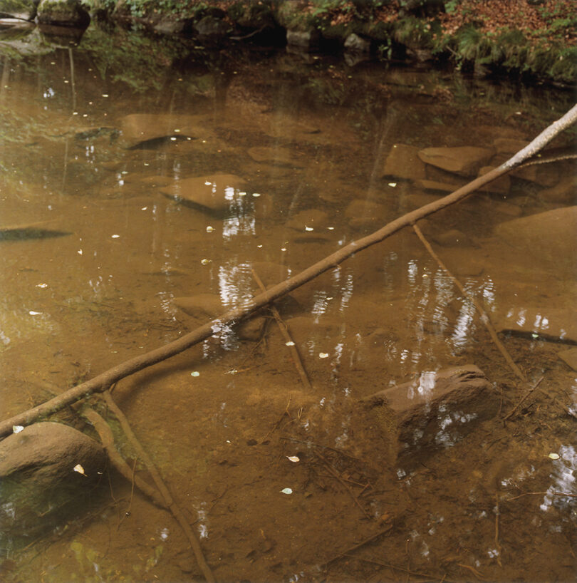 Vom ursprünglichen Vorhaben entlang des Flusses zu fotografieren abgekommen, erfasst Bernhard Fuchs verschiedenste Elemente des Waldes im Mühlviertel. Moosbedeckte Felsen, Wurzeln wie sie aus der Erde wuchern, ein in den moorartigen Bach abgefallener Ast – meist sind es Details, die dem Fotografen ins Auge gefallen sind. Der Betrachter vollzieht eine ähnliche Erfahrung wie die, wenn man im Dunkeln allmählich wieder anfängt zu sehen. Die bekannten, gewöhnlichen Motive wirken anders, wie aufgeladen von einer bestimmten Aura. Diese Änderung der Wahrnehmung geschieht unspektakulär, behutsam und dennoch bestimmt.