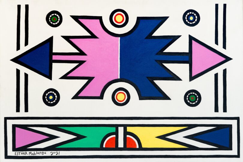Dieses Werk aus dem Jahr 2021 ist Teil der Esther-Mahlangu-Retrospektive in Kapstadt. © Esther Mahlangu / The Melrose Gallery