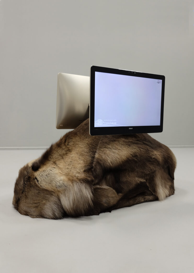 „Taxidermy, computer, RealSense cameras, Skype, CatchEye, sound“: allein die Angabe der Materialen macht bei diesem Werk der Künstlerin Natascha Sadr Haghighian neugierig. Was hat es wohl mit dieser seltsamen, an eine Computermaus erinnernde Plastik auf sich? Die Arbeit ist Teil der Ausstellung „Ways of Seeing“, die den Fokus auf Überwachungsbilder setzt und dabei eine sonderartige Bildform untersucht, die auch als neue, erkenntnisreiche Perspektive auf bestimmte Dinge verstanden werden kann. Der gewählte Titel ist eine Referenz an die berühmte BBC-Serie von John Berger, in welcher der britische Kunstkritiker den Betrachtenden und den Kontext – als entscheidend für die Kunsterfahrung – unter die Lupe nimmt. Ein Tipp zur Vorbereitung auf den Besuch: die Folgen sind komplett auf YouTube zu sehen.