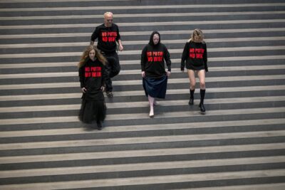 Erst im April war die russische Punkband für ein paar Minuten in der Pinakothek der Moderne aufgetreten und hatte dort zu rhythmischen Beats und gewohnt provokant Russlands Präsidenten als Kriegsverbrecher angeprangert. Mit Strickmasken über dem Gesicht verurteilten sie die zerstörerischen Bomben auf die Ukraine und riefen zur Solidarität mit den Menschen dort auf. Und sie setzten ein besonderes Zeichen der Verachtung: Eine der Frauen lüftete ihren Rock und urinierte auf ein Bild Putins.