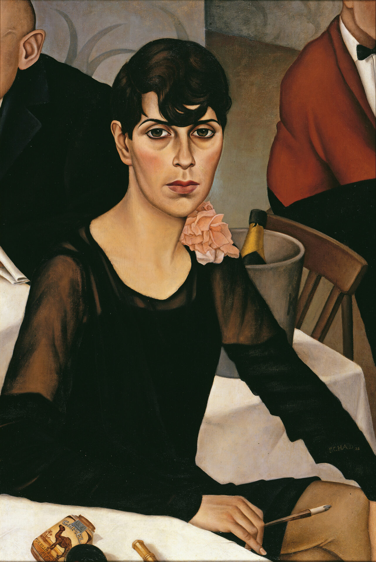 Die Ehrenloge am prominenten Ende dieser Aufzählung ist für die selbstbewussten Frauen reserviert, die man nun plötzlich überall sah. Die Tennis spielen wie in einem Gemälde von Lotte Laserstein, die im Sportwagen am Steuer sitzen, den Rausch der Geschwindigkeit genießen wie bei Albert Birkles „Dame im offenen Wagen“ von 1925. Auch Tamara de Lempicka hat sich selbst so porträtiert, in einem Auto der Farbe British Racing Green, mit furchtlosen stahlblauen Augen und rot geschminkten Lippen. Emanzipiert, selbstermächtigt, was seinerzeit als Ideal galt, gilt noch immer. Oder Schads „Sonja“, die man gar nicht oft genug erwähnen kann: Kurzhaarschnitt, Zigarette rauchend, am Tisch allein im Café, blasse Haut, dunkle Augenringe, im schwarzen Kleid mit durchsichtigen Chiffon-Ärmeln, Stoffblume an der Schulter, mit einem Blick wie ein 400-Seiten-Roman und dem Dichter Max Herrmann-Neiße mitsamt Champagnerflasche im Hintergrund. Das Bild ist fast einhundert Jahre alt, aber wenn einem Sonja heute in einem Berliner Lokal begegnete, wundern würde sich niemand.