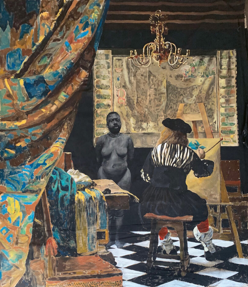 Ihm sei wichtig gewesen, sagt Beil, nicht nur Kunst zu präsentieren, sondern das Thema der Schau mit Leben zu füllen. Auch wenn das nicht unbedingt angenehm sei. Noch immer gibt es in der Stadt Völklingen eine Siedlung, deren Straßen nach Kolonialherren benannt sind. 2021 wurde ein Antrag zur Umbenennung mit einem Bürgerentscheid abgelehnt. Das Museum veranstaltet nun Diskussionsrunden, um sie doch noch durchzusetzen. Umdeutung ist der Begriff, der sich an vielen Stellen der Ausstellung aufdrängt. So generierte die Künstlerin Susana Pilar Delahante Matienzo aus Kuba mithilfe von künstlicher Intelligenz „historische“ Fotos, die zeigen, wie schwarze Frauen in Europa, Afrika und Amerika hätten leben können, wären sie nicht versklavt und unterdrückt worden. Auf einem Bild tragen sie prachtvolle viktorianische Kleider und große Hüte, auf einem anderen sitzen sie in ausgelassener Stimmung in einem Palmengarten. Die Fotos von Delahante Matienzos Werkkomplex „Achievement“ liegen lose auf alten Schreibtischen, können in die Hand genommen und aus der Nähe betrachtet werden.