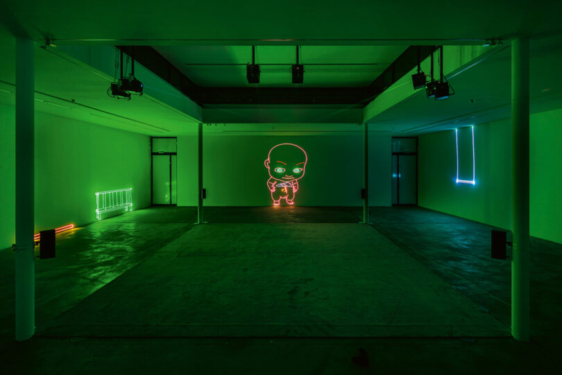 Neugerriemschneider zeigt in einem historischen Maschinenraum, umgeben von hohen Rundbogenfenstern, zum Gallery Weekend eine neue Installation von Olafur Eliasson. Der isländisch-dänische Künstler hat es nicht weit: Gegenüber ist in einem burgähnlichen historistischen Backsteinbau – mit Zinnen! – sein Studio mit einem 100 Köpfe starken Team angesiedelt, zudem das von ihm ins Leben gerufene Studio Other Spaces (SOS), das sich auf experimentelle Bauprojekte konzentriert. Enuma Okoro hat letztes Jahr eine Gruppenausstellung bei Hauser & Wirth in New York kuratiert und dabei auch ein Werk von Olafur Eliasson integriert. „Ich liebe den kuratorischen Prozess“, sagt sie, vor allem, wie es dabei um die Konversation zwischen den Werken gehe, zwischen der Kunst und den Besuchenden, aber auch den Besuchern untereinander – gerade über diesen letzten Punkt, sagt sie, müsse man mehr nachdenken. „Kunst kann Verbindungen zwischen Menschen ermöglichen.“