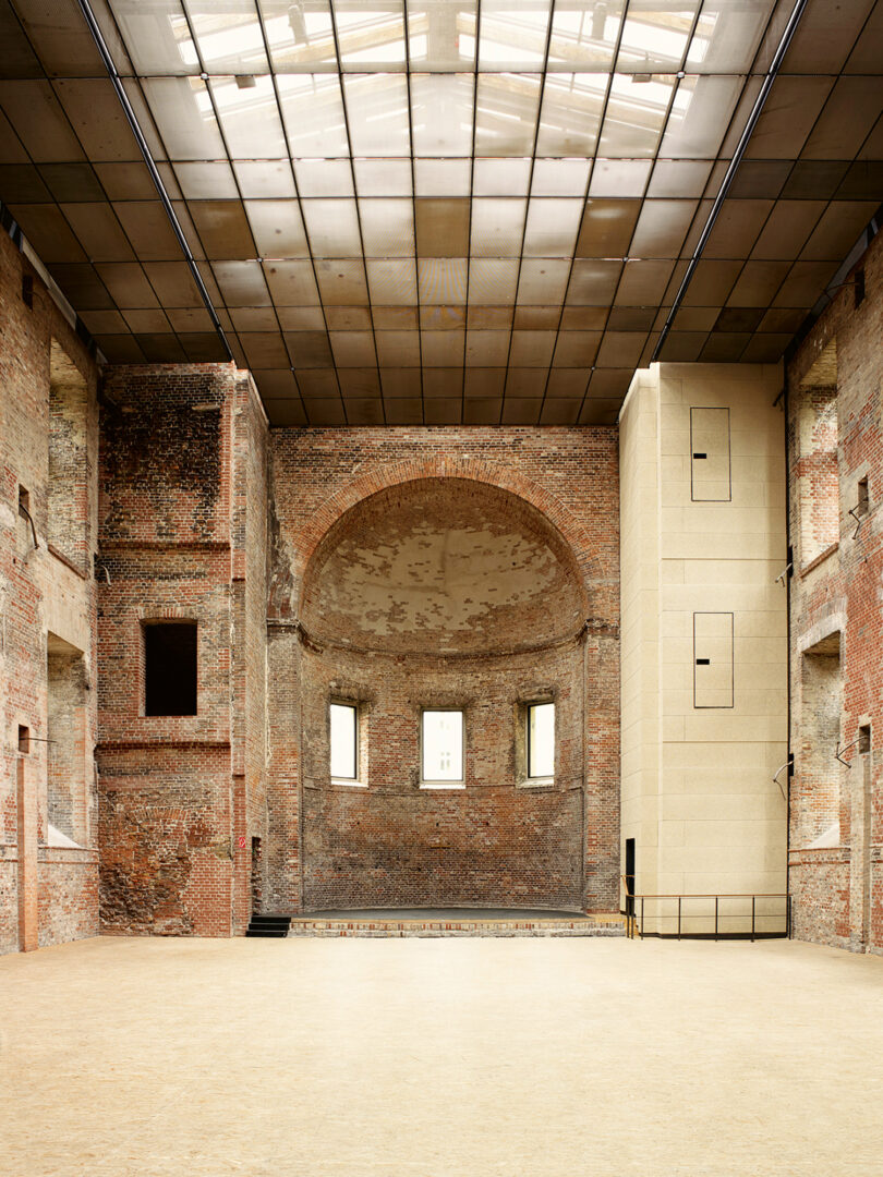 Hinter dem Biergarten, wo übrigens ab Pfingsten wieder regelmäßig Tango getanzt wird, liegt das Aedes Architekturforum mit seinen Ausstellungssälen. Um die Ecke finden wir unter dem hoch aufragenden Schornstein einen Ableger der Galerie Neugerriemschneider. Sie ist mit rund sechzig Mitarbeitenden eine der prominentesten deutschen Galerien und hat Kunstschaffende wie Ai Weiwei im Programm. Der chinesische Künstlerstar lebt seit einigen Jahren eigentlich in Portugal, aber sein riesiges Atelier in unterirdischen Gewölben der ehemaligen Brauerei hier auf dem Pfefferberg hat er behalten.