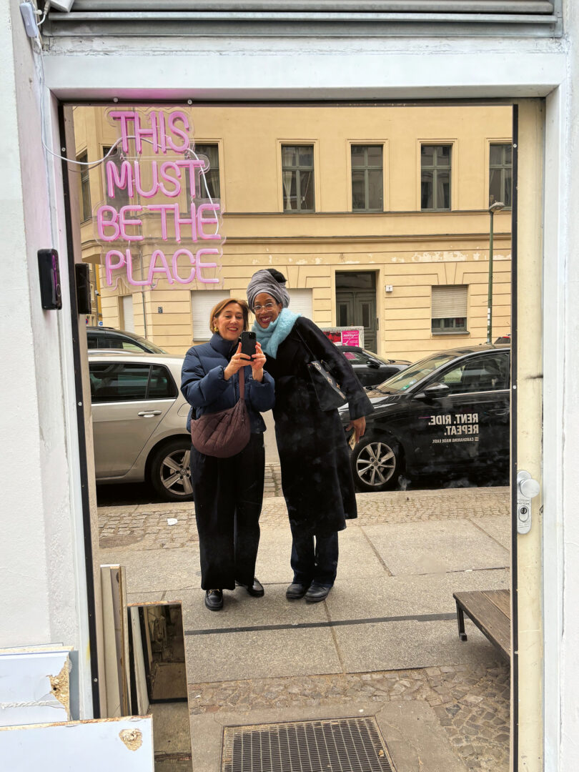 Nebenan sehen die Etagen des Tchoban-Museums aus wie leicht versetzt gestapelte Kartons. Die Motive auf ihren Betonoberflächen verraten, worum es im Inneren geht: Architekturzeichnungen vom 16. Jahrhundert bis zur Gegenwart. Wir treten ein, um die Skizzen des amerikanischen Postmodernisten Steven Holl (bis 4. Mai) zu betrachten. Okoro bleibt bei einem Entwurf für eine Kirche in Seattle stehen. „St. Ignatius!“, ruft sie aus. Der Jesuitenorden spielt auch in ihrem Leben eine Rolle, denn sie hat sich nach dem Theologiestudium als „Spiritual Director“ ausbilden lassen. Was sie dadurch vor allem gelernt habe, erzählt sie, sei der Wert von aufmerksamem Zuhören. Diese Qualität von ihr erlebe ich an diesem ganzen Nachmittag – auch während einer Pause im Café Lass uns Freunde bleiben bei einem Ingwertee.