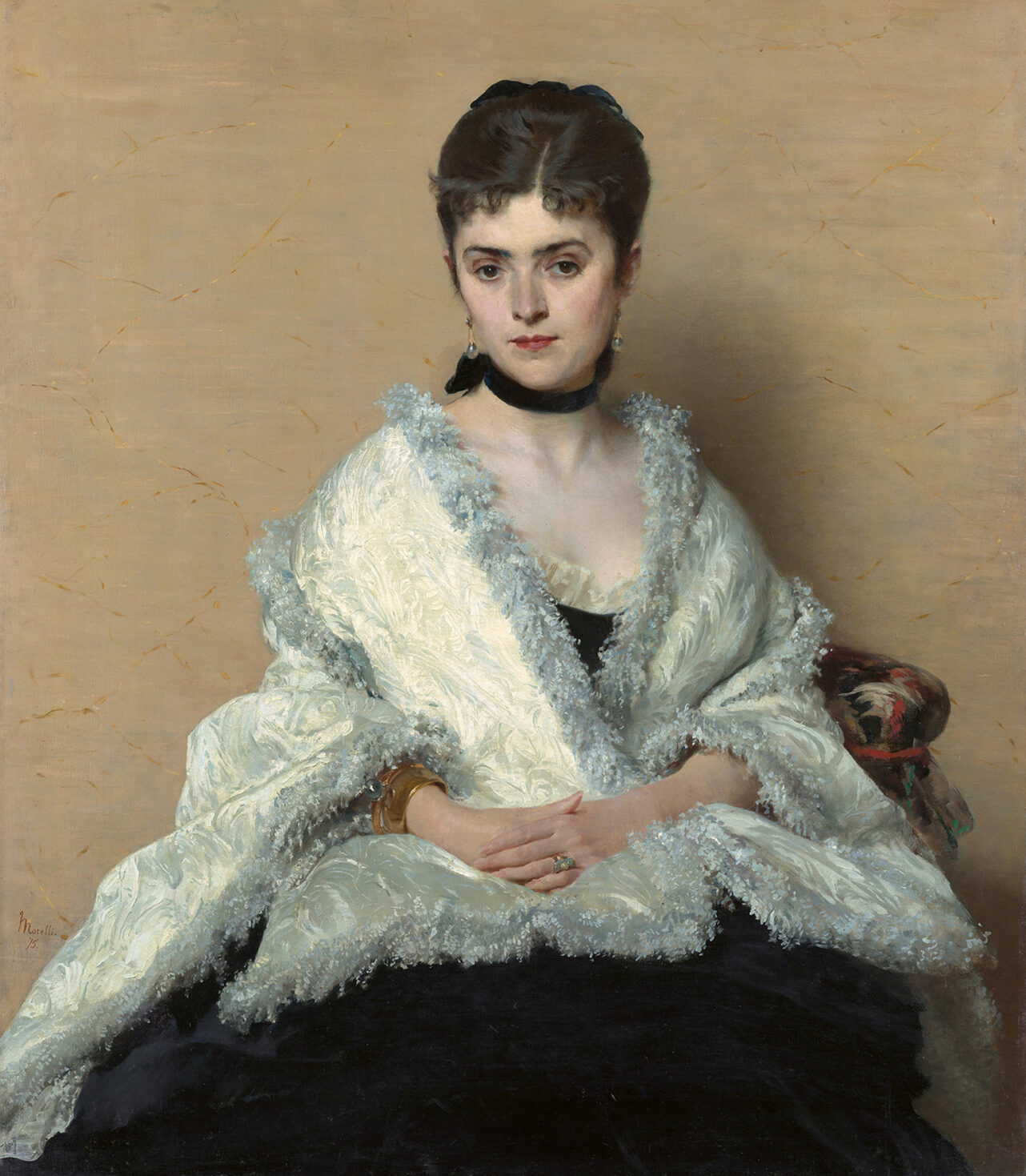 Da ist die Gräfin Olena Tolstoi, die Domenico Morelli 1875 porträtierte. Der Künstler aus Neapel war als Vertreter des Naturalismus damals gefragt. Heute ist sein Ruhm verblasst, aber die Gräfin mit ihrem schwarzen Kleid, den schwarzen Haaren und dem weißen Umhang malte er mit solch ergreifendem Ernst, dass man glaubt, sie ahnte, was ihr Bildnis 150 Jahre später erwarten würde.