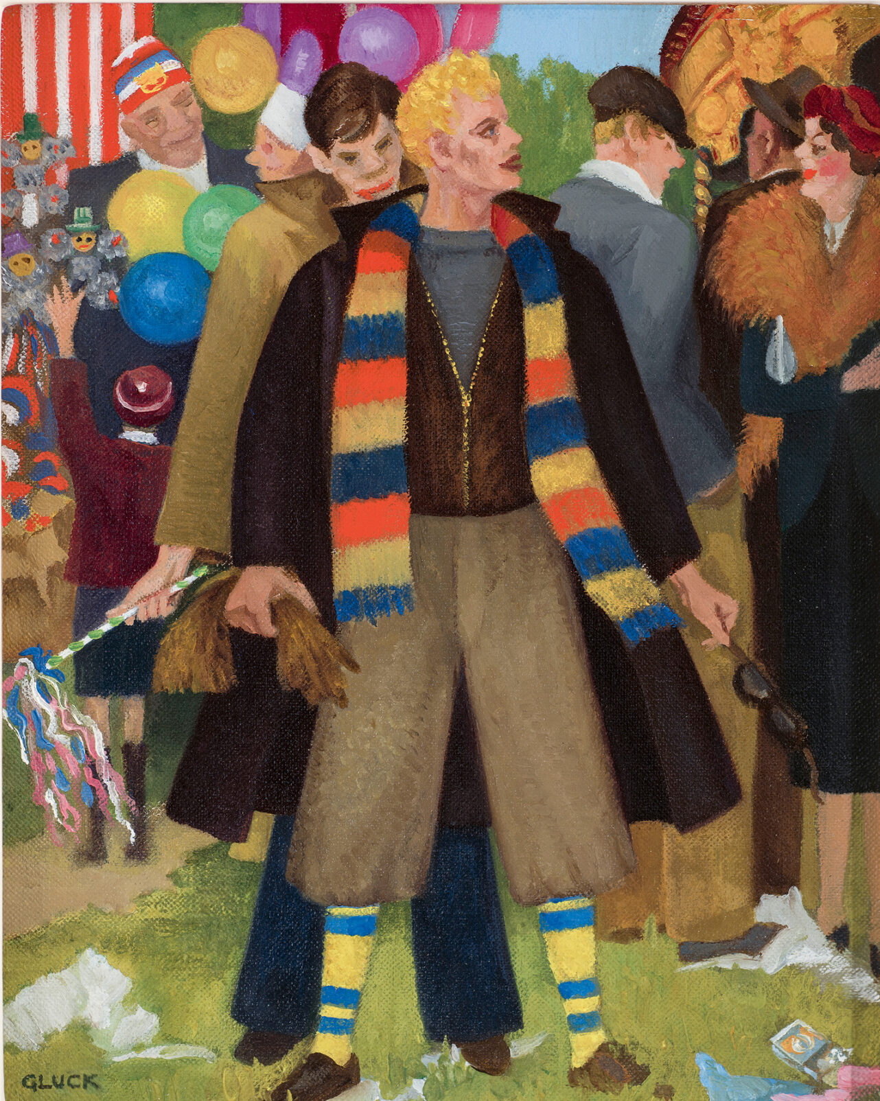 Liebe kann manchmal so einfach sein: Zwei Menschen stehen auf einem Rummelplatz und scheinen Zeit und Welt vergessen zu haben. Allein die Präsenz ihres Gegenübers zählt für sie in diesem Moment. Eine solche Szene voller Zärtlichkeit malte Gluck 1937 in „Bank Holiday Monday“. Wobei im Bild eine gewisse Spannung enthalten ist: Die hintere Figur mit dem Mantel legt ihren Kopf leicht schief, als würde sie ihre nächste Handlung abwägen, die wir Zuschauer nur erraten können. Wird sie die Figur mit dem Schal umarmen, ihren entblößten Hals küssen? Die zwei könnten Männer sein – aber wenn man Glucks Biografie kennt, sind es wohl eher Frauen: Im Jahr bevor sie dieses Bild schuf, hatte die englische Malerin mit der Mäzenatin und Dramatikerin Nesta Obermer die große Liebe ihres Lebens kennengelernt.