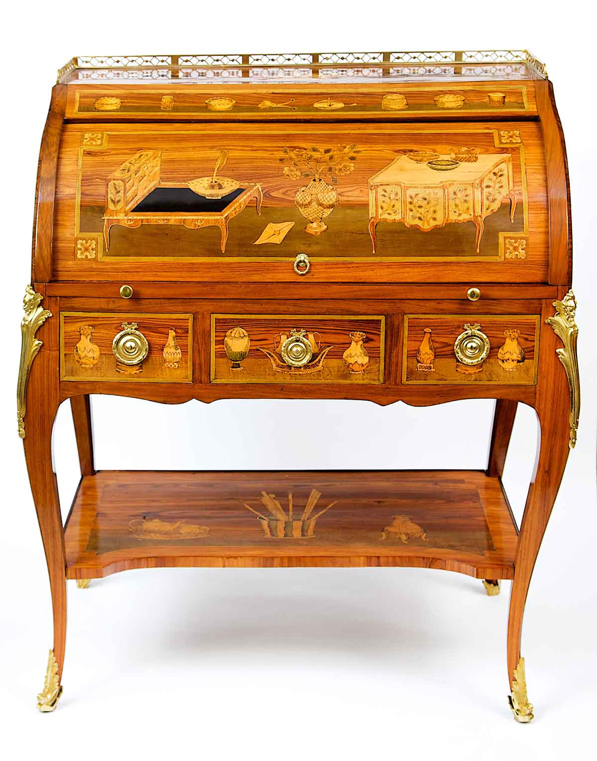 Das bedeutende Louis-XV–Zylinderbüro für 48.000 Euro stellt Ralph Gierhards aus.