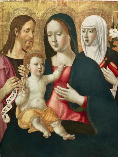Andacht spricht aus dem Bild von Girolamo Di Benvenuto bei G. Sarti (400.000 Euro), der um 1510 die Gottesmutter mit Jesuskind, Johannes dem Täufer und die Mystikerin Katharina von Siena versammelte.
