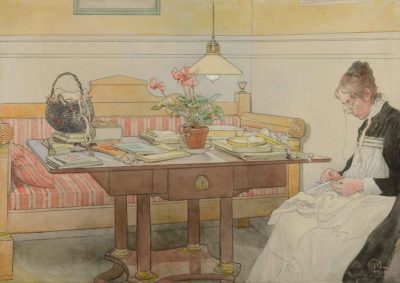 Carl Larssons Porträt einer in ihre Arbeit versunkenen „Karin“ ist am Stand von Åmells für 382.000 Euro) zu finden.