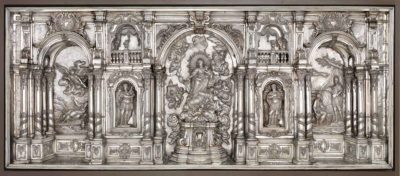 Einen glänzenden Auftritt hat das Antependium aus vergoldetem Silber am Stand der Galerie Neuse. Es stammt von Agostino Natoli, der 1768 in Palermo ein Meisterwerk von zweieinhalb Metern Länge schuf. 2,4 Millionen Euro soll die Darstellung mit Madonna und Szenen aus dem Alten Testament kosten.