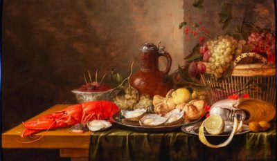 Wenig ist über den niederländischen Stilllebenmaler Philips Gijsels bekannt, der 1650 in in die Den Haager Lukasgilde aufgenommen wurde. Eine Vorliebe für Krustentiere, deren Schattierungen er virtuos wiedergab, zieht sich wie ein roter Faden durch seine Gemälde. In den ungeordneten, doch stets durchdachten Kompositionen spielen Hummer die Hauptrolle – so auch in dem Stillleben, das P. de Boer für 80 000 Euro anbietet. Neben dem Krebs besticht die 65 mal 110 Zentimeter große Leinwand mit Austern und einem Krug aus Irdengut, auf dem sich das Licht bricht. Foto: Kunsthandel P. De Boer