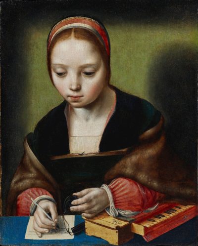 Den Namen des Malers, der zwischen 1520 und 1530 die „Junge Dame am Clavichord, Cecilia" festhielt, kennt niemand mehr. Man nennt ihn – angelehnt an sein Lieblingsmotiv – schlicht den Meister der weiblichen Halbfiguren. Ob es sich um einen Künstler oder eine ganze Werkstatt handelt, ist nicht dokumentiert. Fest steht, dass sein bekanntestes Porträt „Drei musizierende Mädchen" heute auf Schloss Rohrau hängt. Zwischen 400 000 und 500 000 Euro soll die Schreibende bei Kollenburg kosten. Foto: Kollenburg Antiquaires