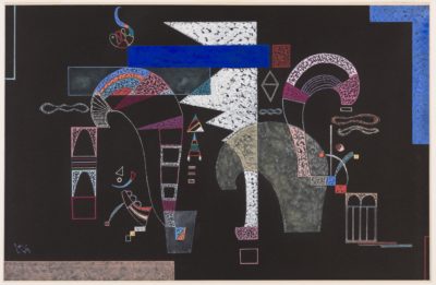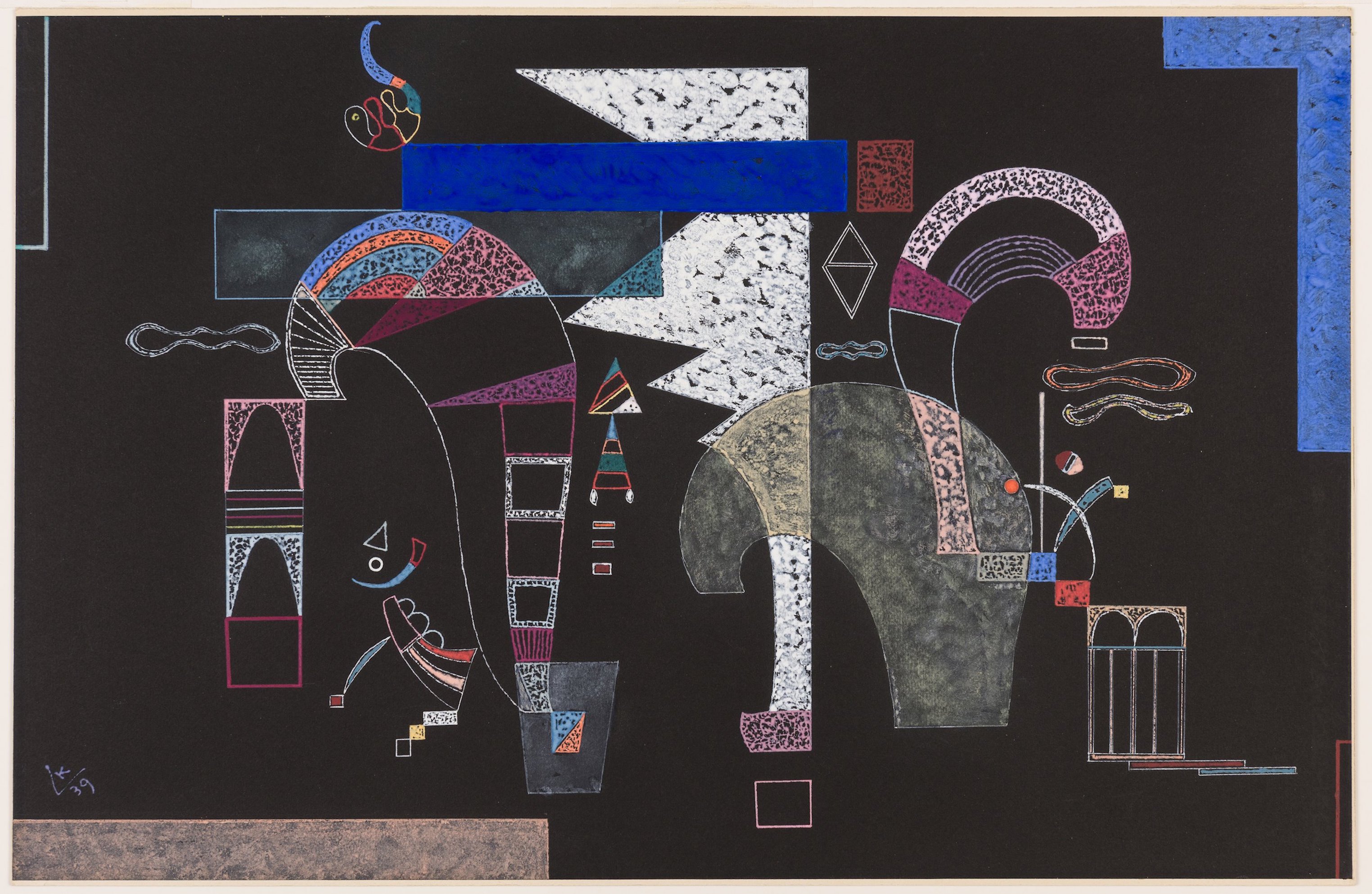 Während andere Künstler seiner Generation Aquarelle und Gouachen als Skizzen betrachteten, sah Wassily Kandinsky sie als eigenständige Kunstwerke. Ab 1935 begann er, mit einer neuen Technik zu experimentieren: Tempera trug er auf schwarzes Papier auf, um seine opaken Lilanuancen und Blautöne auf dem Bildgrund zum Vibrieren zu bringen. Die vorliegende Gouache „White Form (La Forme Blanche)" aus der Sammlung der Familie Louis-Dreyfus vollendete Kandinsky 1939, nachdem er sich in Neuilly-sur-Seine nieder-gelassen hatte. Stephen Ongpin rechnet für die tanzenden Formen mit 640 000 Euro. Foto: Stephen Ongpin Fine Art