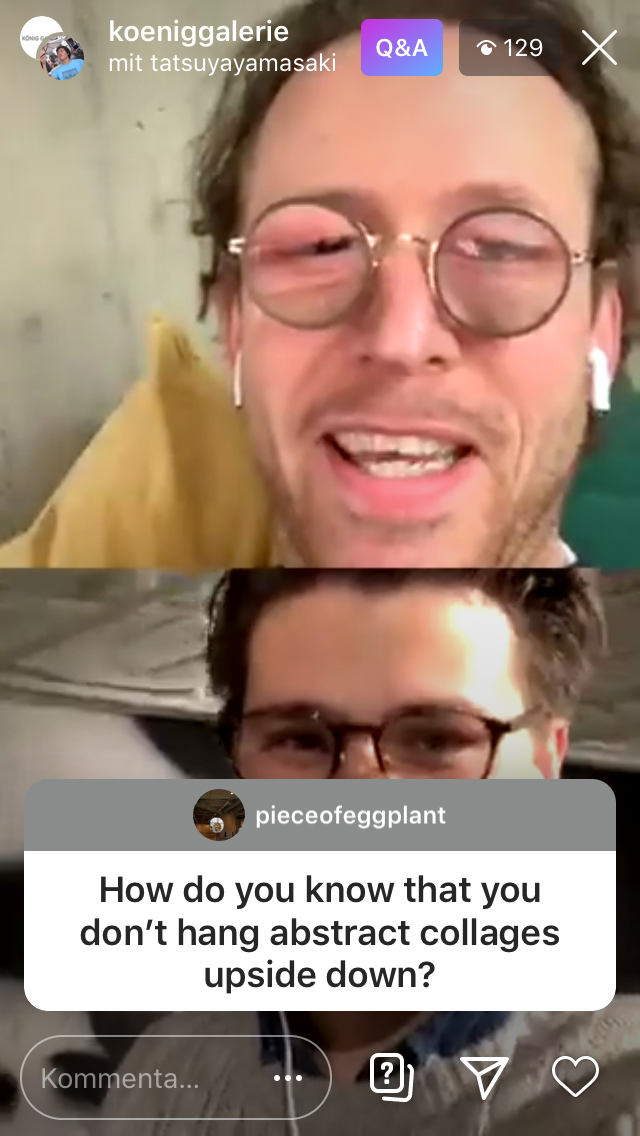 »Als das Gallery Weekend abgesagt wurde, haben wir die Werke von Loie Hollowell, die wir zeigen wollten, im digitalen Showroom hochgeladen und sofort eines für 250 000 Euro verkauft. Viewing Rooms sind jetzt meiner Meinung nach aber der falsche Weg. Die Leute wollen was erleben, sich mit der Kunst identifizieren. Mich energized die ganze Sache. Wir machen jetzt live auf Instagram jeden Morgen um 10 Uhr Rundgänge mit den Künstlern der Galerie. Wir haben mit Jorinde Voigt angefangen, dann kam Jeppe Hein, dann Michael Elmgreen. Am Ende können die Zuschauer Fragen stellen. Die Energie im Gespräch mit Alicja Kwade war so stark! Das kann man auch auf Youtube sehen.«