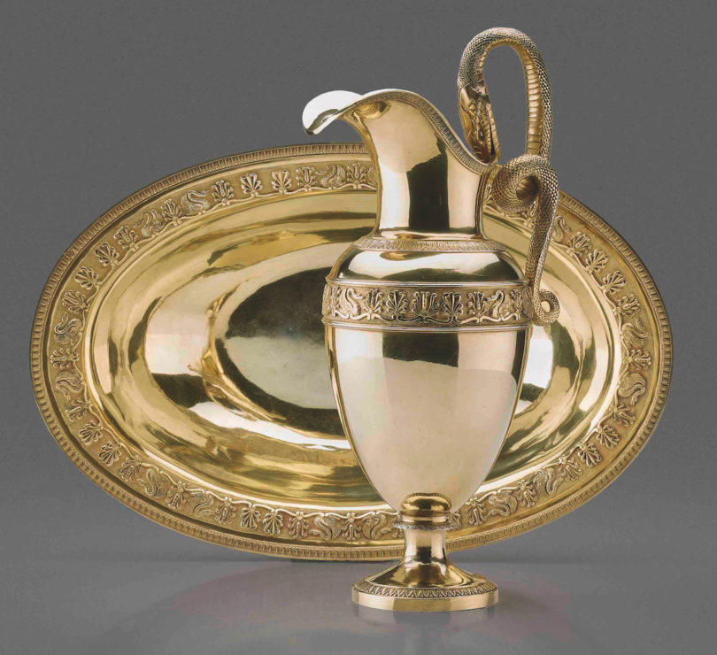 Zwischen Möbeln des Rokoko und Klassizismus und vielen anderen musealen Antiquitäten ist bei Christian Eduard Franke eine vergoldete klassizistische Lavabo-Garnitur zu entdecken. Das tiefe, ovale Becken und die Kanne mit Palmettenfries wurden zwischen 1819 und 1838 in Paris gefertigt. „Mit solchen Kannen wurde Gästen festlicher Bankette parfümiertes Wasser zum Benetzen der Hände gereicht“, erklärt der Firmeninhaber Franke-Landwers. Eine Rarität ist das Gamsweibchen aus der Frührenaissance, das Matthias Wenzel in seiner Kunsthandlung präsentiert: Das süddeutsche Stück, um 1520 in Eichenholz geschnitzt und polychrom gefasst, besticht durch seine Qualität (9000 Euro). „Früher hingen solche Gamsweibchen im Haus an der Wand, und der Fachliteratur nach dienten sie wohl zum Aufhängen von Schlüsseln“, sagt Wenzel, der zudem mit einer sehr schönen Madonnen aus dem Umkreis des Tiroler Bildschnitzers Hans Klocker aufwarten kann.