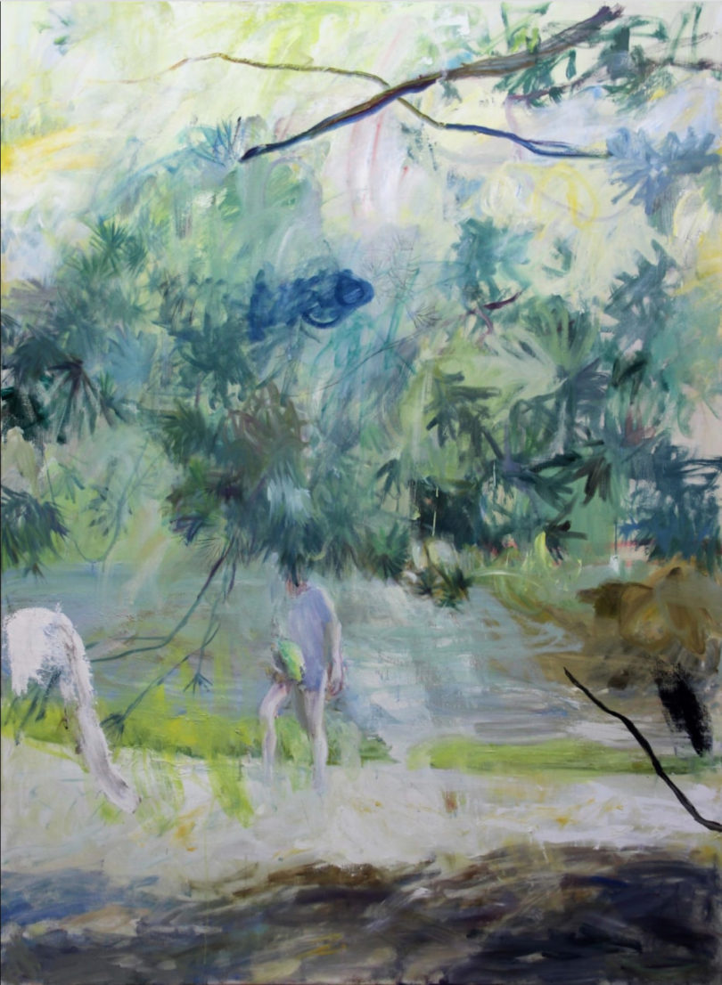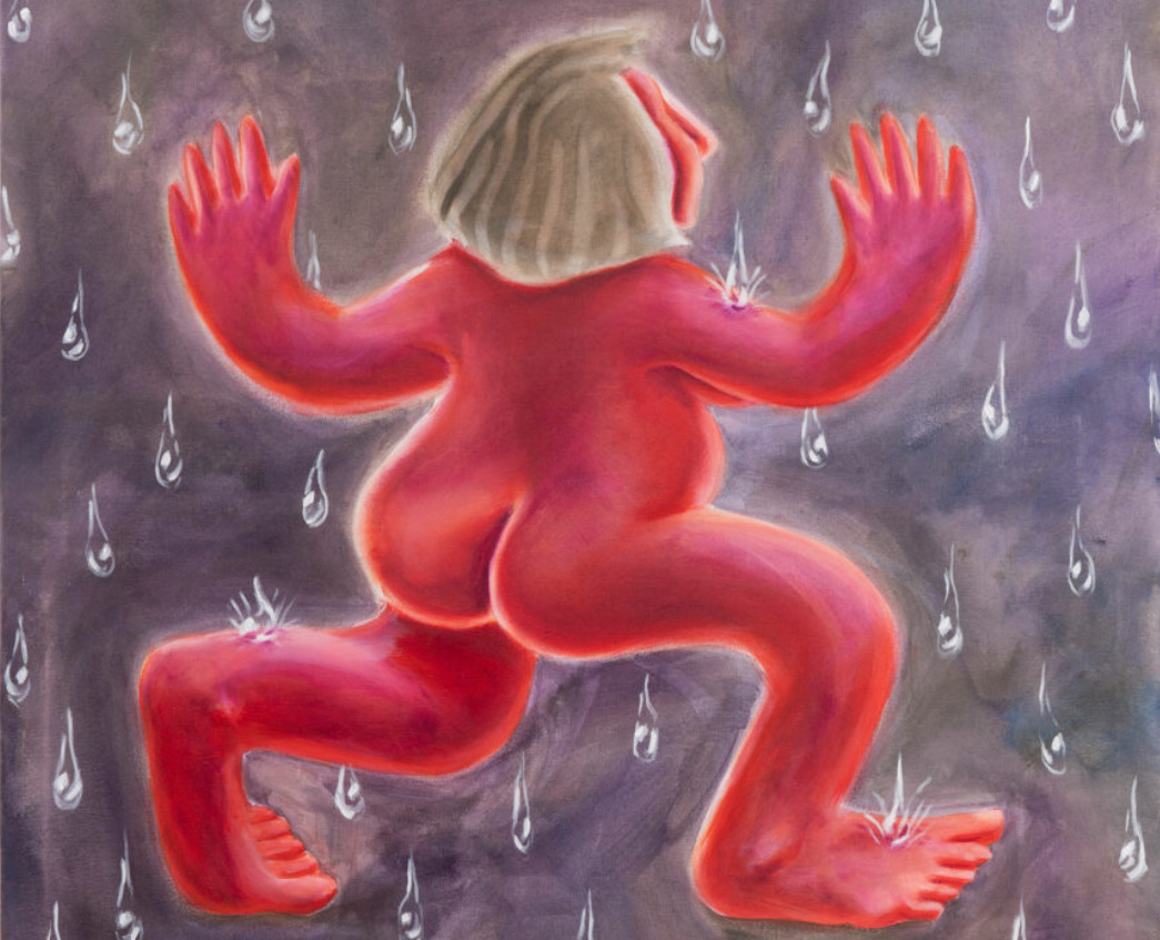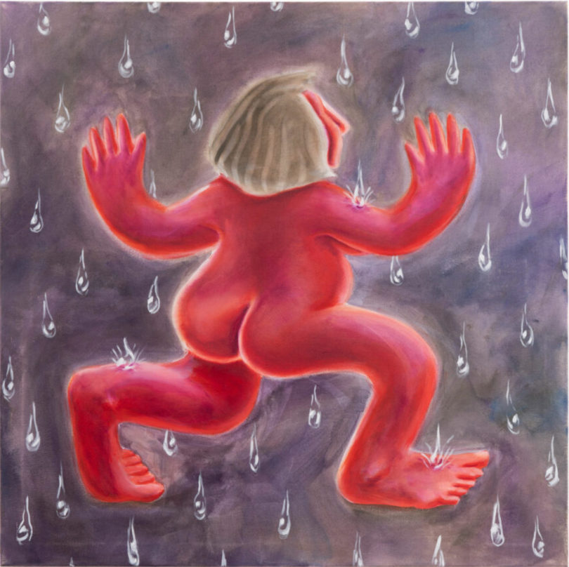 Bewegung, Volumen und die Farbe Rot zeichnen die verspielten Bildwelten der 1995 geborenen Künstlerin Tamara Malcher aus. In diesen begegnen uns immer wieder tanzende, leuchtende Körper. Malcher lebt und arbeitet in Münster, wo sie sich unter anderem mit antiken, vor allem altägyptischen Darstellungen des weiblichen Körpers beschäftigt. Die Positur der mit Acrylfarbe gemalten Frau erinnert an ägyptische Malereien, auf denen die Figuren meist auch von der Seite und mit erhobenen Armen dargestellt wurden. Entdeckt haben wir das „A couple weeks I could feel it comin’“ (100 x 100 Zentimeter) in der Weserhalle in Berlin-Neukölln. Die Galerie, die sich auf zeitgenössische Positionen sowohl aus dem physischen als auch dem digitalen Bereich spezialisiert, bietet die Arbeit für 3.800 Euro an.