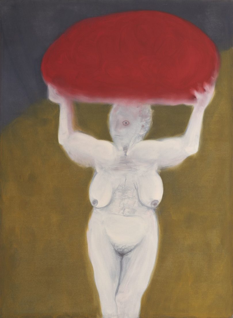 Für ihre erste eigene Kunstaktion brachte Miriam Cahn illegal Wandzeichnungen über einer Autobahnbrücke bei Basel an. Die Tat hatte nicht nur eine Verhaftung inklusive Prozess zur Folge, sondern brachte auch eine Einladung auf die Documenta 7 mit sich. Es folgten die Teilnahme an der Biennale in Venedig im Jahr 1984 und ein DAAD-Stipendium in Berlin. Mit ihren Arbeiten hinterfragt die 1949 geborene Schweizerin geschlechterspezifische Rollenverhältnisse und lehnt sich deutlich gegen die männlich dominierte Kunstwelt auf. Cahn widmet sich Themen wie Gewalt, Krieg und Flucht, die sie als männliche Phänomene einordnet. Im Mittelpunkt ihrer sehr direkten und oft schonungslosen Malerei steht meist der menschliche Körper. Das Gemälde „mein gepäck mit den armen meiner großmutter tragen, 20.1.2022“ (2022) ist eine Erinnerung an ihre Großmutter, die vor den Nationalsozialisten fliehen musste. Nun kann es als Pigmentdruck (Edition von 50 + 5 AP) beim Distanz Verlag für 580 Euro erworben werden.