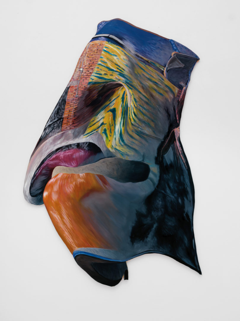 Das klassisch zweidimensionale Bild hat bei Stefan Reiterer ausgedient. Doch statt sich komplett von der Malerei zu verabschieden, hat sich der Künstler aus Österreich so lange damit beschäftigt, bis er auf neue Gedanken gekommen ist. Sein „Template IX“ (196 x 128 Zentimeter) biegt und verflüssigt das Gemälde. Es mag an die surrealen Welten eines Salvador Dalí erinnern, geht aber viel weiter. Reiterer verzerrt auch die Motive, bis man kaum mehr erkennt als Fragmente, die mit abstrakten Zonen wechseln. Ein Strudel mit Sogwirkung. Die meisten Arbeiten sind dazu objekthaft, ragen in den Raum und scheinen ihn gleich mit zu verändern. „Displacement“ hieß seine jüngste Ausstellung in der Berliner Galerie Crone, die Reiterers Arbeit nun für 5000 Euro auf der Art Cologne anbietet.