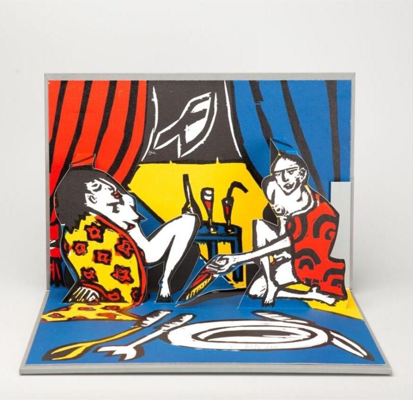 ShareFür ein aufklappbares Künstlerbuch haben sich sieben Künstlerinnen und Künstler mit den sieben Todsünden beschäftigt und diese als bunte Pop-up-Grafik gestaltet. Zu den Todsünden, die im fünften Jahrhundert nach Christus von Mönchen ausgerufen wurden, gehören: Hochmut, Habgier, Wollust, Zorn, Völlerei, Neid und Trägheit. Über die heutige Relevanz des Sündenkatalogs lässt sich streiten, doch die bunten Kunstwerke, die für jede der sieben Sünden eine zeitgenössische Perspektive darlegen, lassen sich hervorragend ins heimische Regal oder auf die Kommode stellen. Bei der „Wolllust“ von Klaus Süß handelt es sich um einen Holzschnitt, auf dem sich zwei leichtbekleidete Figuren voller Begierde anschauen. Am 24. und 25. März ruft Venator & Hanstein in Köln die einzelnen Schnitte von 2011 bis 2014 jeweils zur Taxe von 600 Euro auf. Von den Büchern, die bei Burgert Presse in Rudolstadt erschienen ist, gibt es 50 Exemplare (+ 10 E.A.).