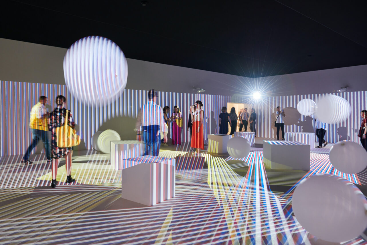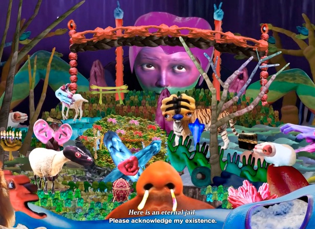 Wer junge Entdeckungen machen will, sollte sich ohnehin abseits der Muttermesse umschauen. Traditionell bietet sich dafür die Liste, der älteste Satellit und seit Corona sogar in den Hallen der MCH untergebracht, über der Unlimited, allerdings ohne direkten Zugang zu ihr oder Muttermesse. Der Umzug aus der verwinkelten Alten Warteck Brauerei in die nüchterne Halle hat zwar eine übersichtliche und demokratische Ausstellungsarchitektur mit sich gebracht, die allen Galerien drei Wände und eine Öffnung zum Umgang oder auf den zentralen Platz gewährt. Doch Besucher wie Aussteller wünschen sich im Gespräch eine etwas charmantere Atmosphäre und mehr Raum zum Verweilen. Dahin ist die rumpelige Gemütlichkeit des verwinkelten Industriebaus. Abwechslung bieten jetzt nur noch die Aussteller selbst, die zunehmend globaler werden und zum Teil hier ihr internationales Messedebut geben, wie der ironischen benamten Property Holdings Development Group aus Hongkong, die mit der multimedialen Arbeit „Gyro“ der 35-jährigen Japanerin Sasaoka Yuriko einen Stand gebaut haben, der Spielwiese, Kino und Galeriewand miteinander vereint. Zu dem am Computer collagierten sehr wilden Video um Wetterkatastrophen und Zerstörung in einer 20er-Auflage gibt es Textilarbeiten mit mythologischen Figuren in zwei Größen zu Preisen zwischen 16.000 und 18.000 Dollar. Preislich dürfte das Niveau eher im Bereich der Möglichkeiten der zumeist europäischen Sammler liegen. Denn die mit Beginn der Pandemie ausgebliebenen US-Amerikaner scheinen noch immer nicht in voller Stärke zurück zu sein.